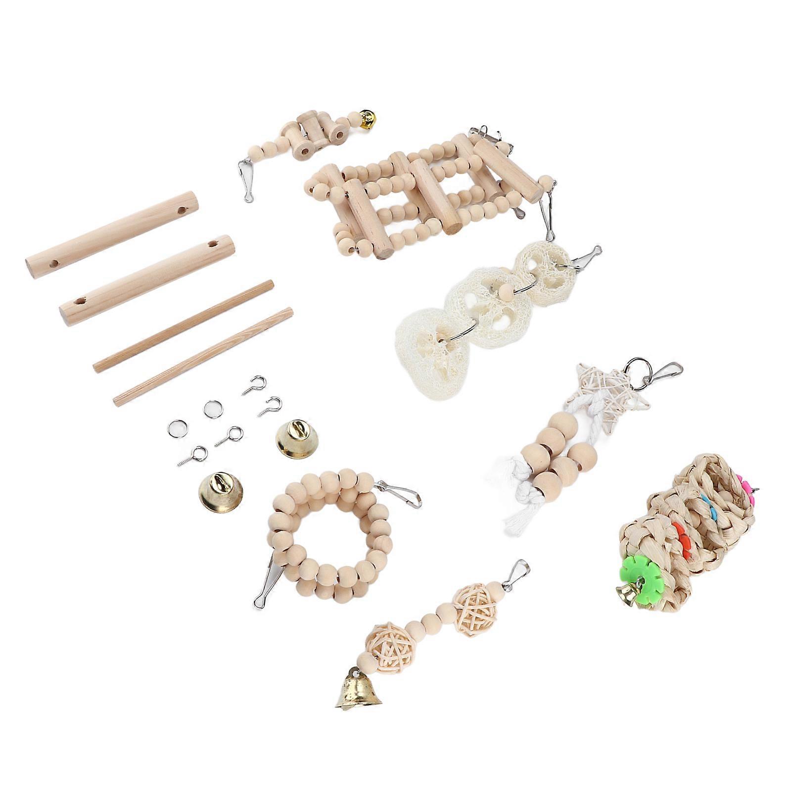 8Pcs Wooden Parrot Toys Bird Swing Chewing Ladder Cage Set