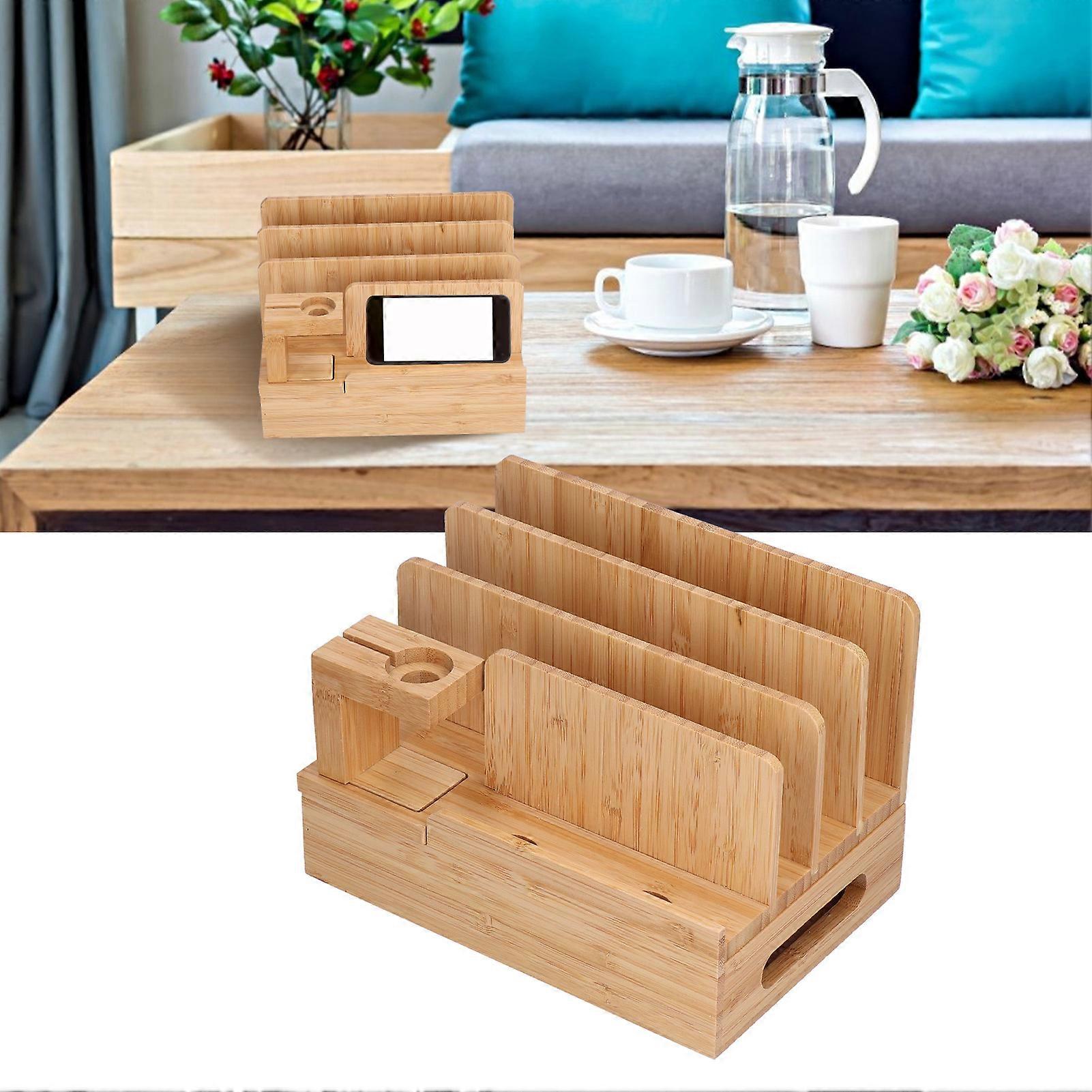 Bamboo Charging Station Organizer with USB Charger, 21.5x14.5x14.6cm