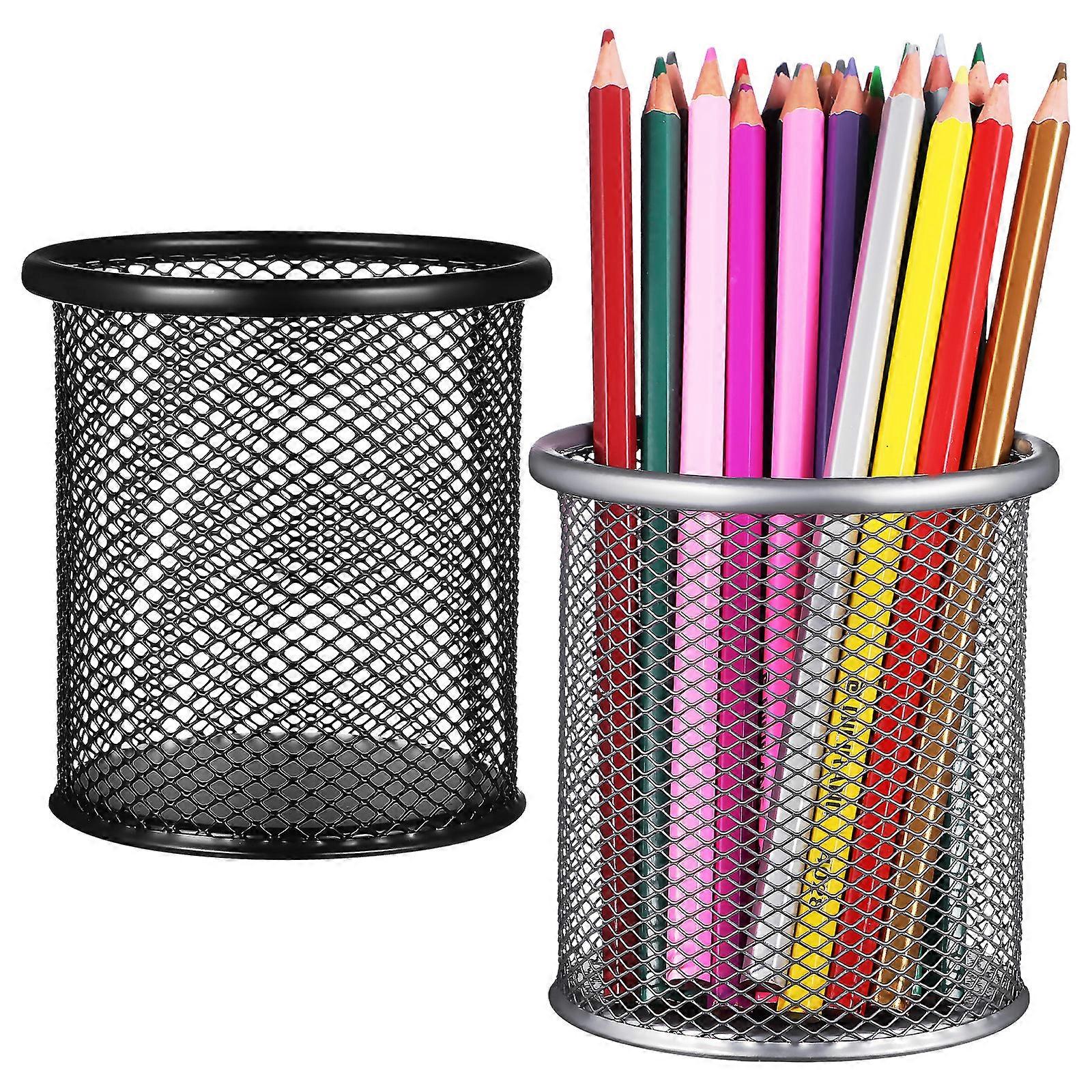 Yuanmiaoke 2pcs Mesh Pen Holder Desktop Pen Cup Pencil Cup Metal Pen Organizer Makeup Brush Holder Desk Organizer