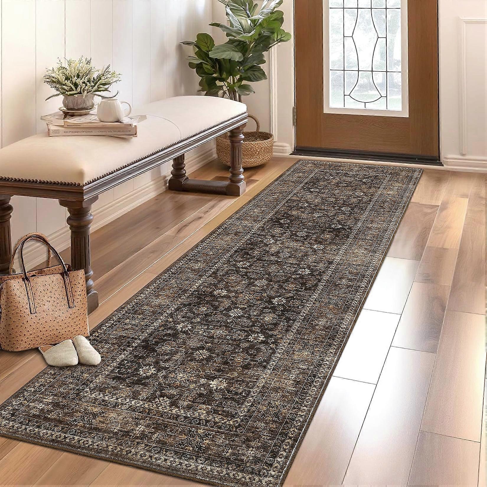 Haperlare Boho Runner Rugs Oriental Vintage Runner Rugs for Hallway Washable Non Slip Laundry Entryway Runner Rug,Brown,2'x6'
