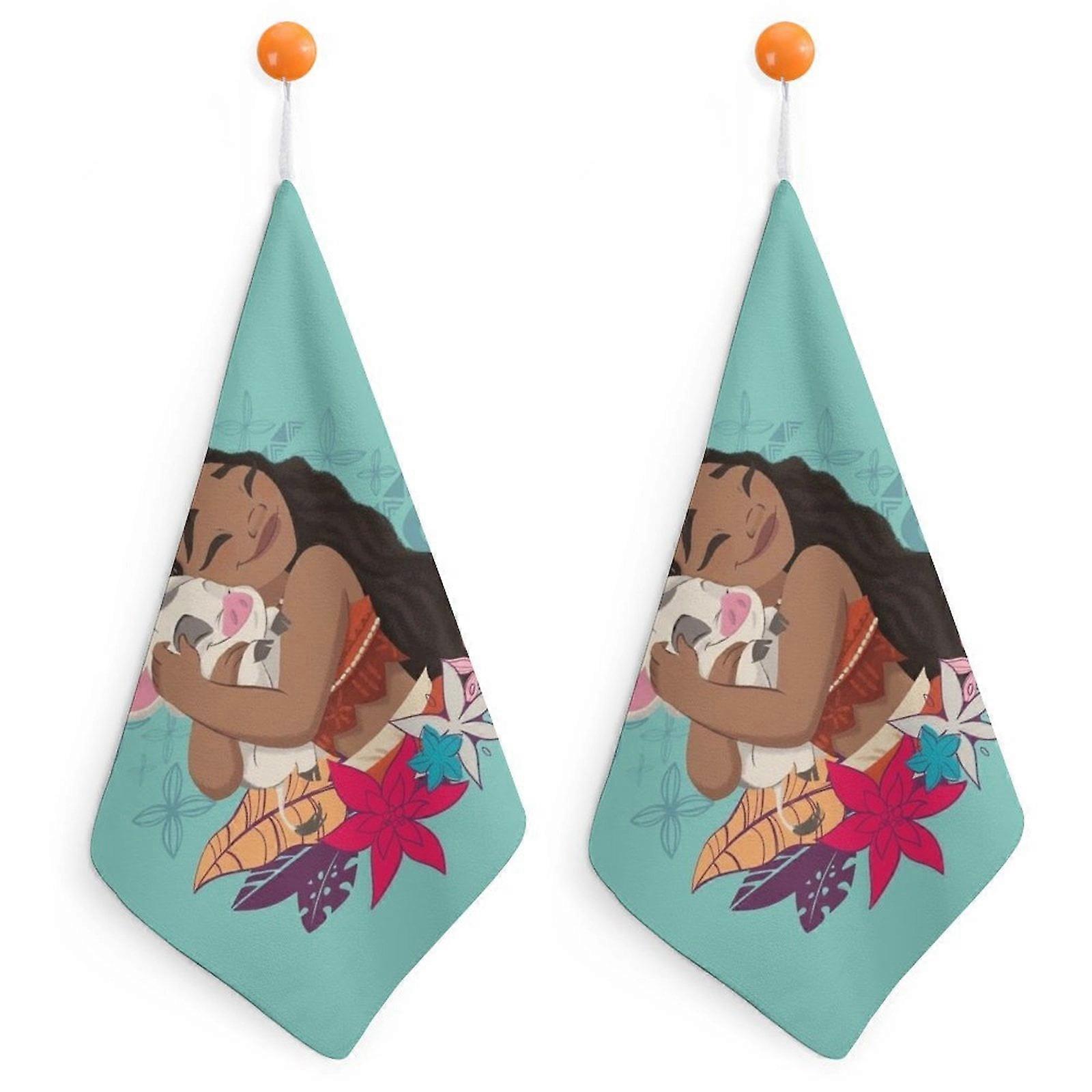 Moana Hand Towels for Bathroom, Cotton Face Towels Soft Absorbent for Spa Bath Gym Kitchen, Hand Towel Set Decorative Checkered 2PCS