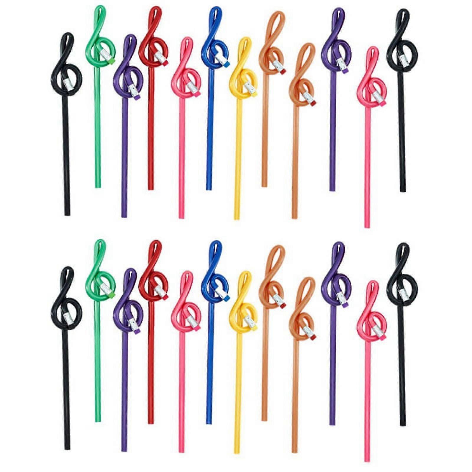24Pcs Students Note Pencils Musical with Eraser Colorful Music Wooden Treble Clef Bent Pencil