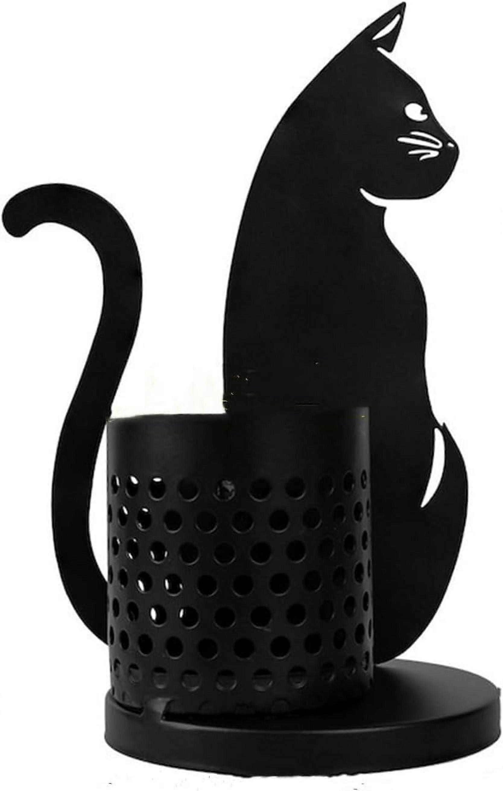 Cute Cat Pen Holder for Desk, Metal Pencil Cup Organizer, Black Cat Home Decor & Gift for Cat Lovers