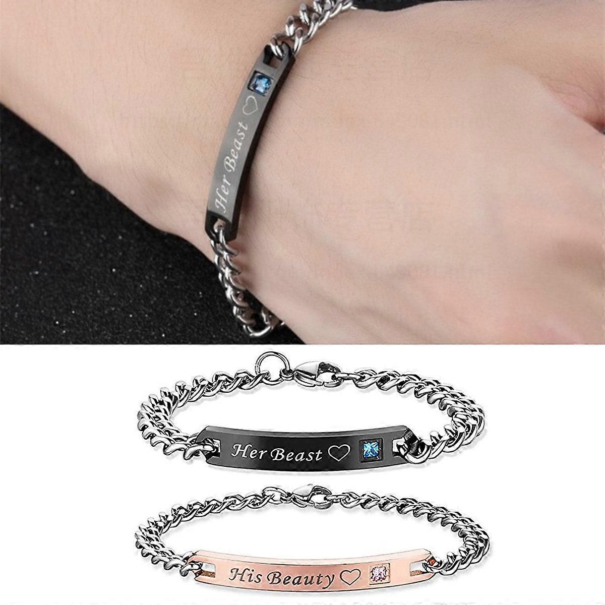 Meidiya Couple Bracelets Set 2Pcs - Compatible with Romance Gifts, His & her Link Bracelets with Lettering for Birthday, Promise