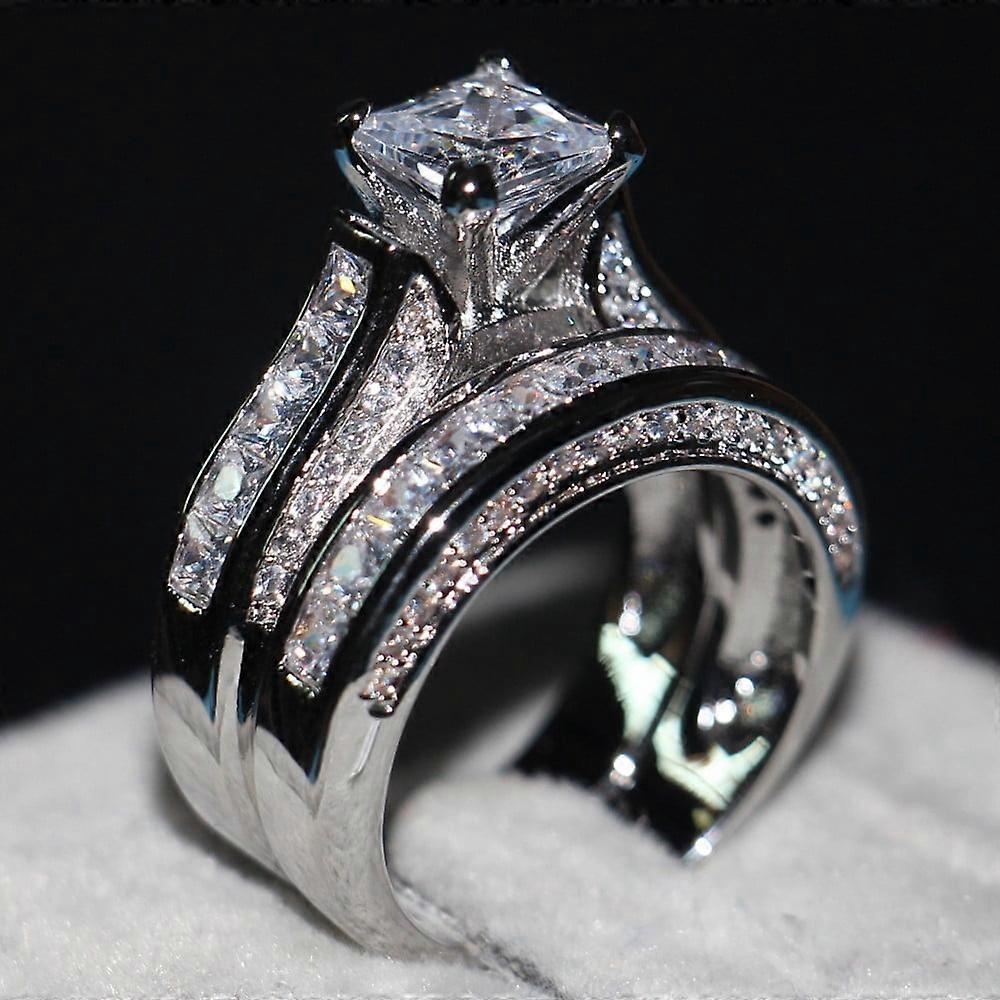 Toyfunny 2-in-1 Womens Vintage White Diamond Silver Engagement Wedding Band Ring Set