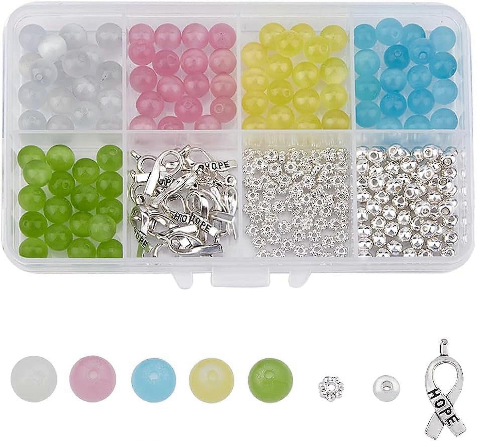 245PCS DIY Jewelry Kit with Hope Charms, Cancer Awareness Pendants, Cat Eye Beads, Alloy Spacers for Bracelet Necklace Earrings Making