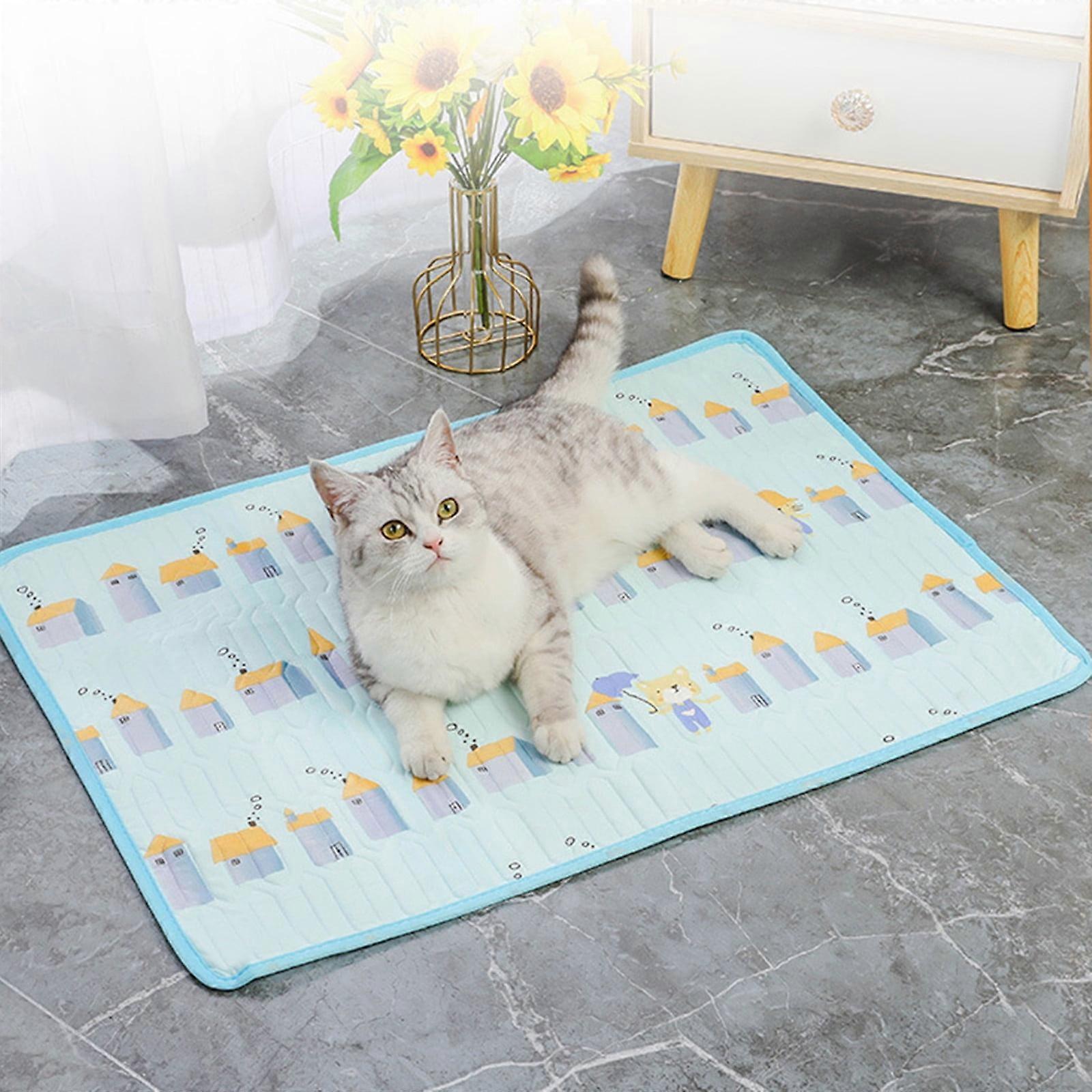 Hoarboeg Pet Cooling Mat for Dogs Cats, Ice Silk Cooling Mat, Portable Washable Blanket for Kennel/Sofa/Bed/Floor/Car (Blue-M)