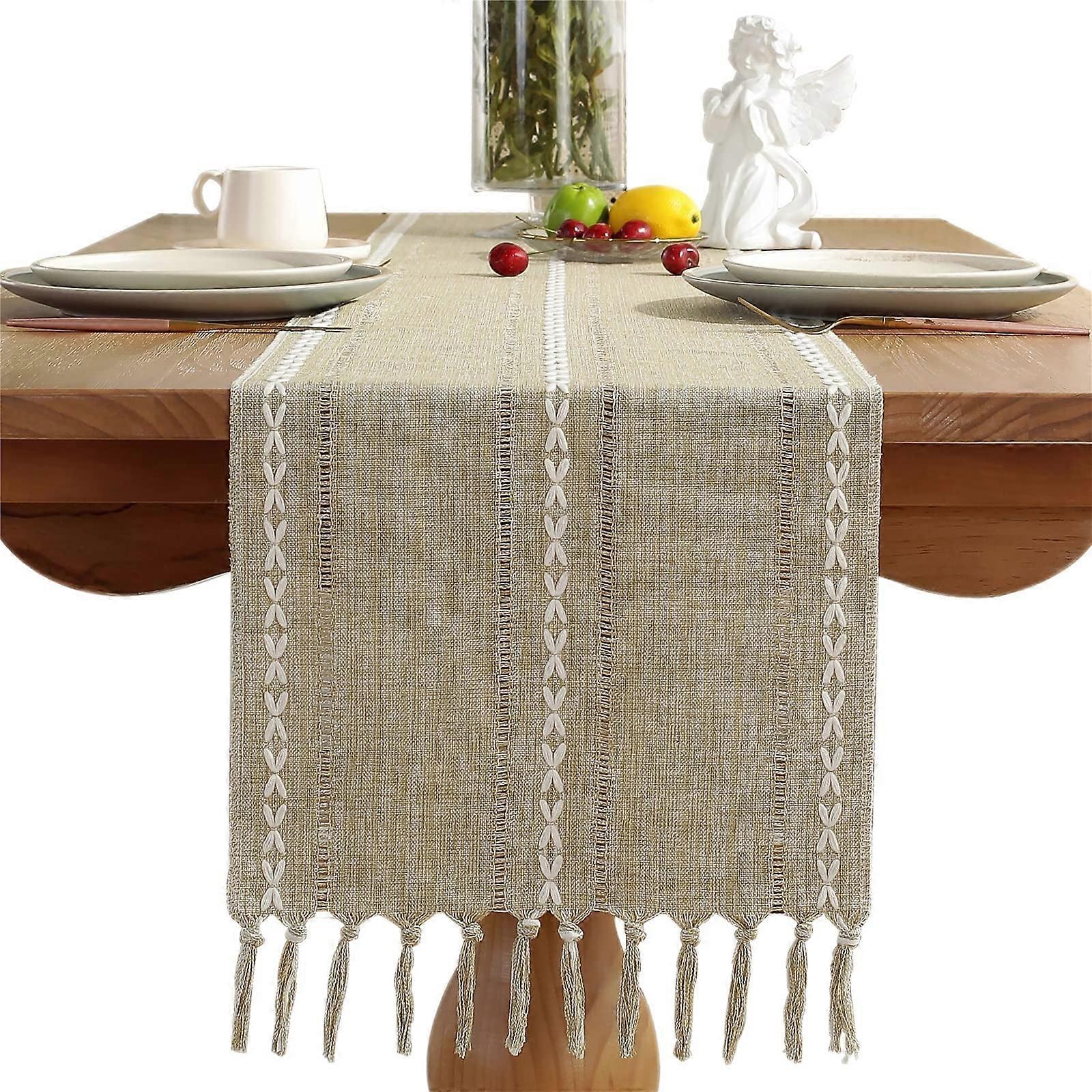 Husfou Table Runners with Tassels, 13x72in Woven Hollow Table Linens, Boho Linen Table Runner for Bohemian Wedding Brida