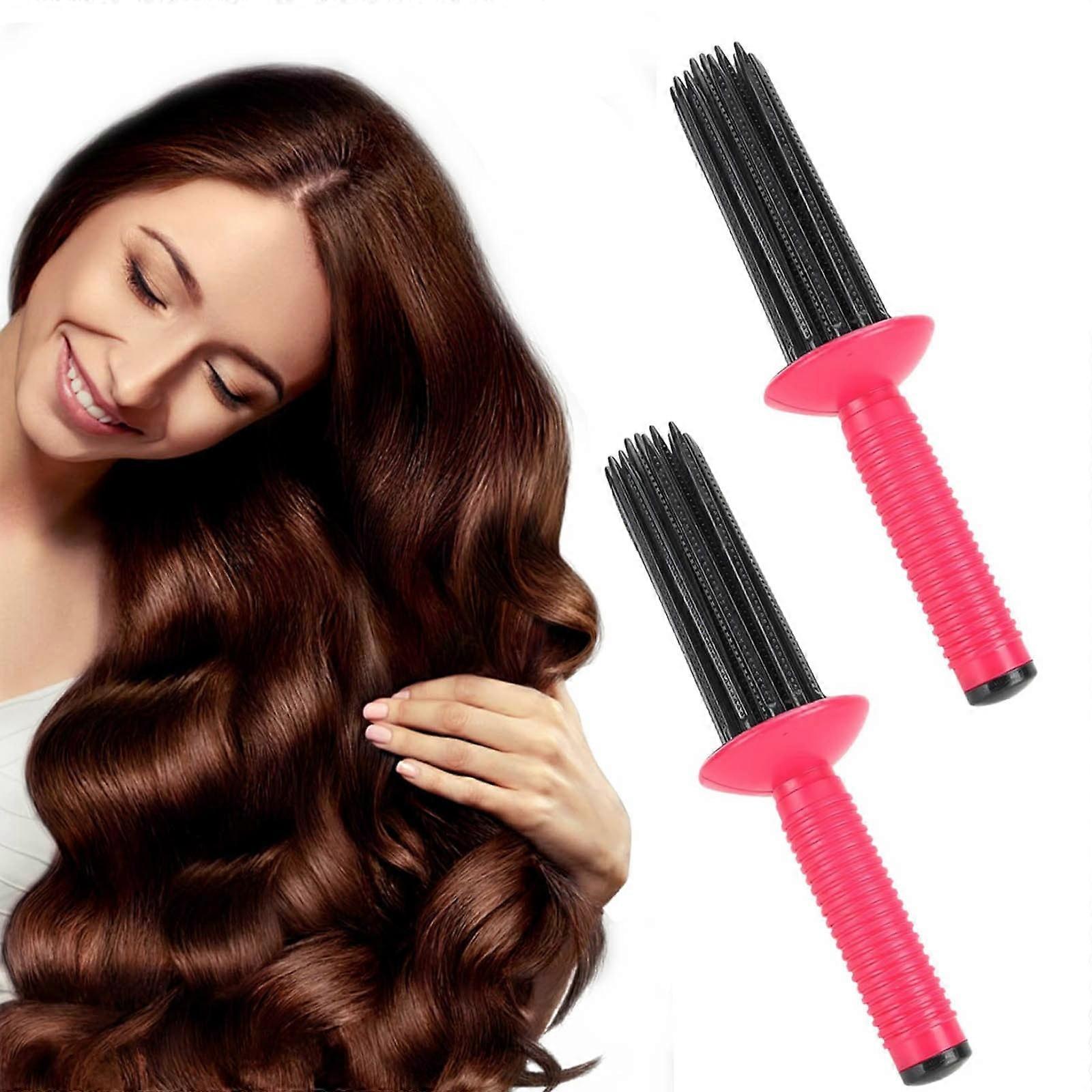 5 Hair Curler Set, Compatible with Salon Tools - 2Pcs Wand, Roll Comb & Round Brush for Curly Styling