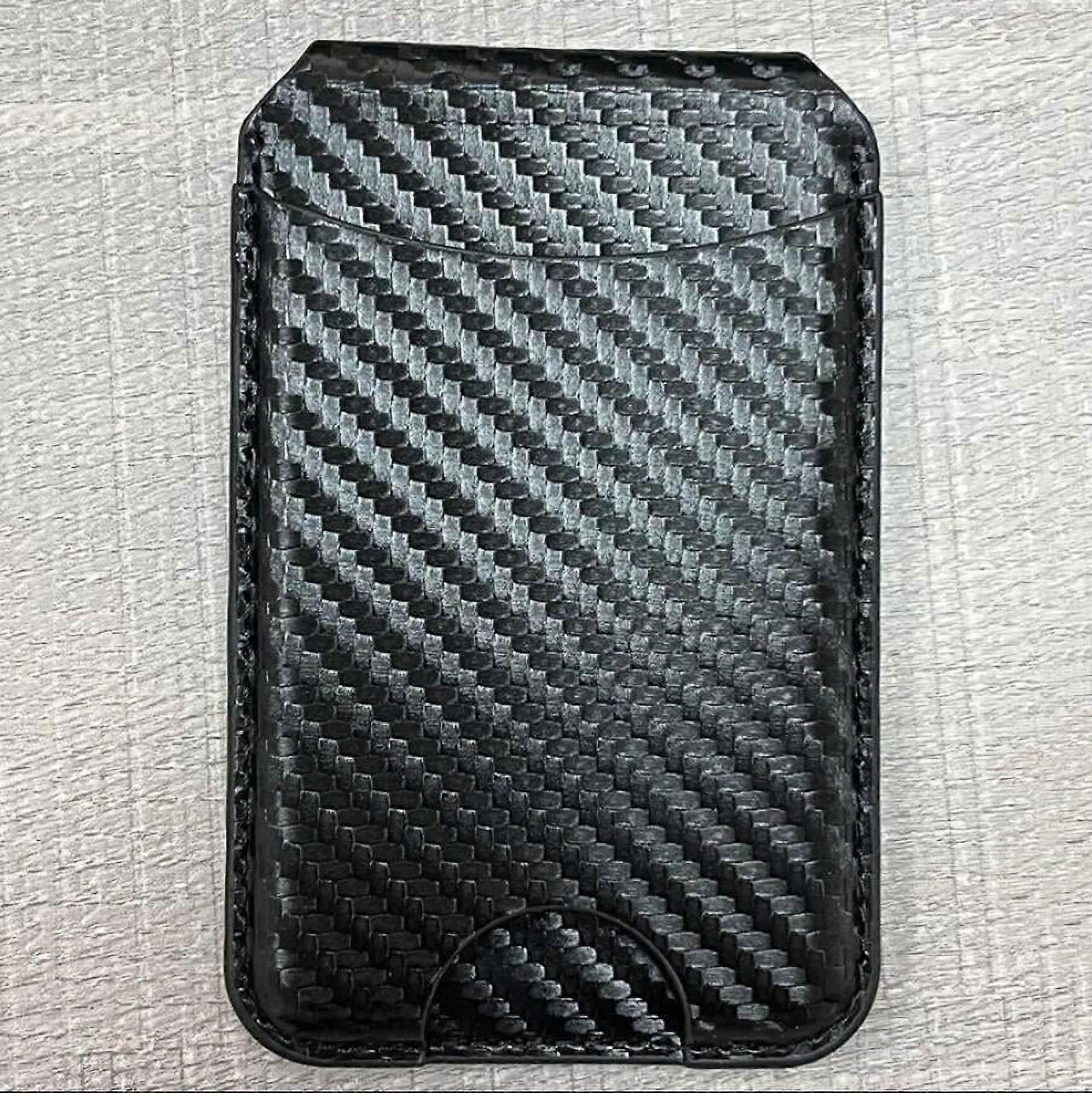 Luxury Leather Magsafe Magnetic Card Holder compatible with iPhone 12 13 14 15 16 Pro Max 15Plus, Carbon Fibre Wallet Case