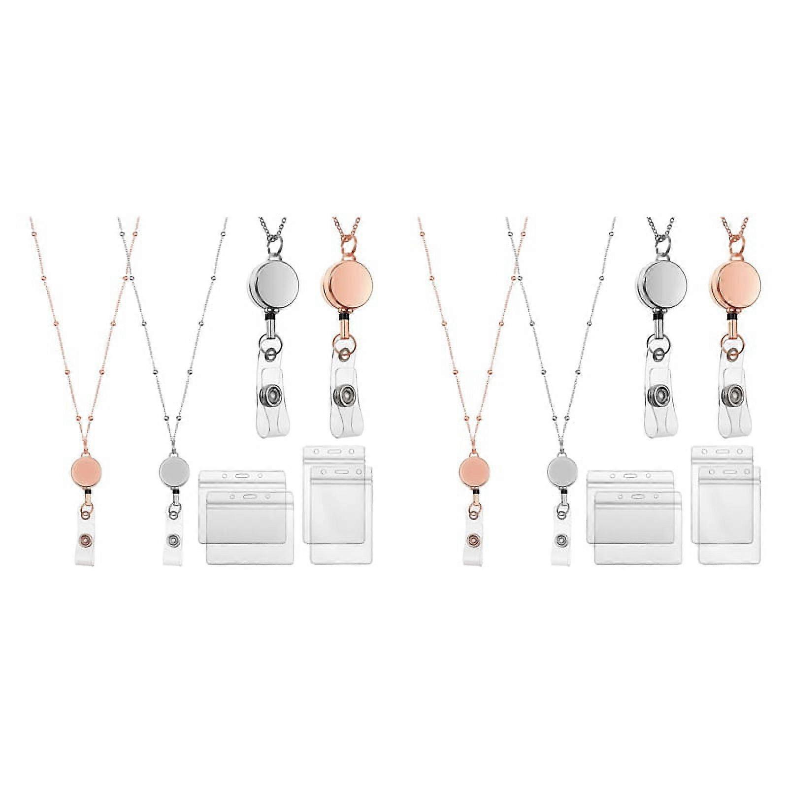 4 Pcs Retractable Badge Reel Lanyard with ID Holder Necklace Lanyard Badge Clip Chain Waterproof Holder - C
