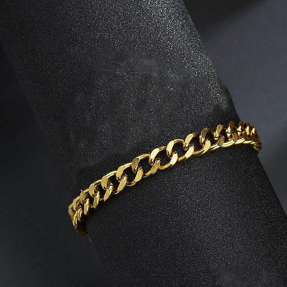 Simple Cool Punk Stainless Steel Hiphop Street Korean Style Bracelet Cuba Chain Bracelet Women Bracelet Fashion Jewelry GOLD 7MM H