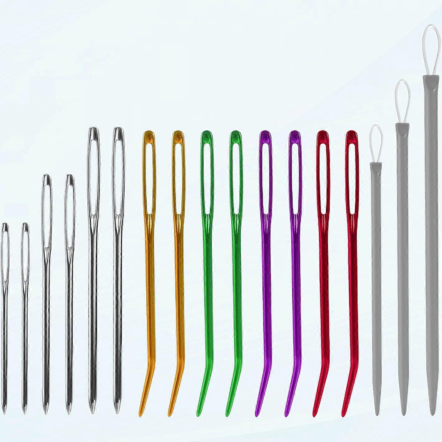 17pcs Large Eye Blunt Needles, Stainless Steel & Aluminum, Compatible with Wool Yarn, for Sewing, Knitting, Darning, Tapestry, Crochet Projects