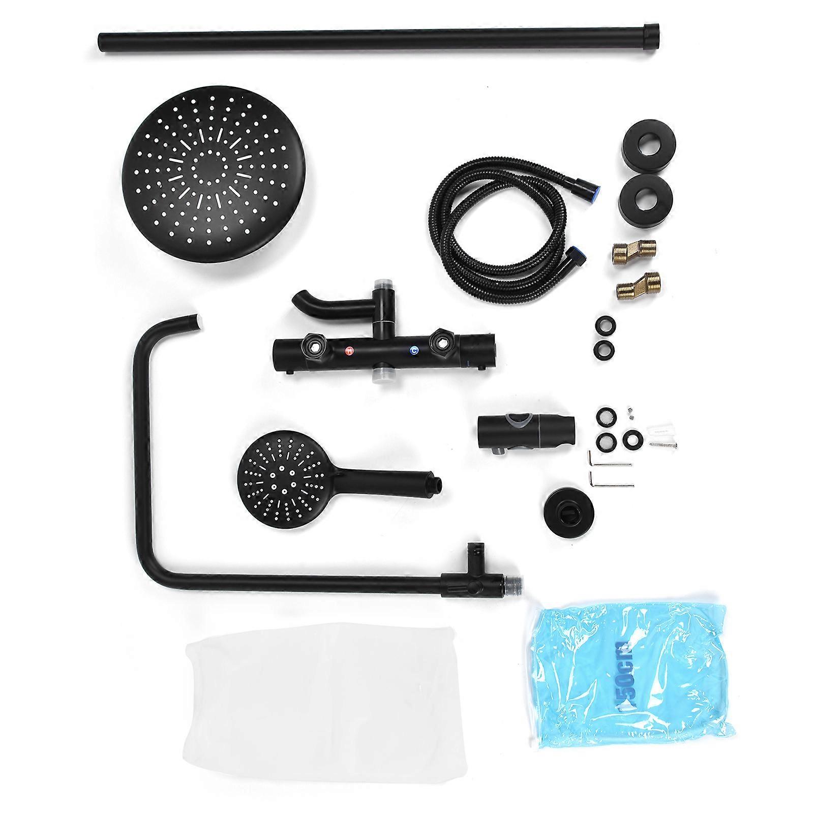 Multifunction G1/2 Thermostatic Black Shower Set 27x13cm Head