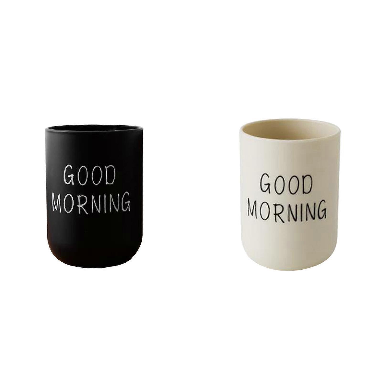 Round Acrylic Toothbrush Cup with Yes/No Design, Compatible with Bathroom Decor, Ceramic-Look Tumbler for Couples, No Handle Mugs Set