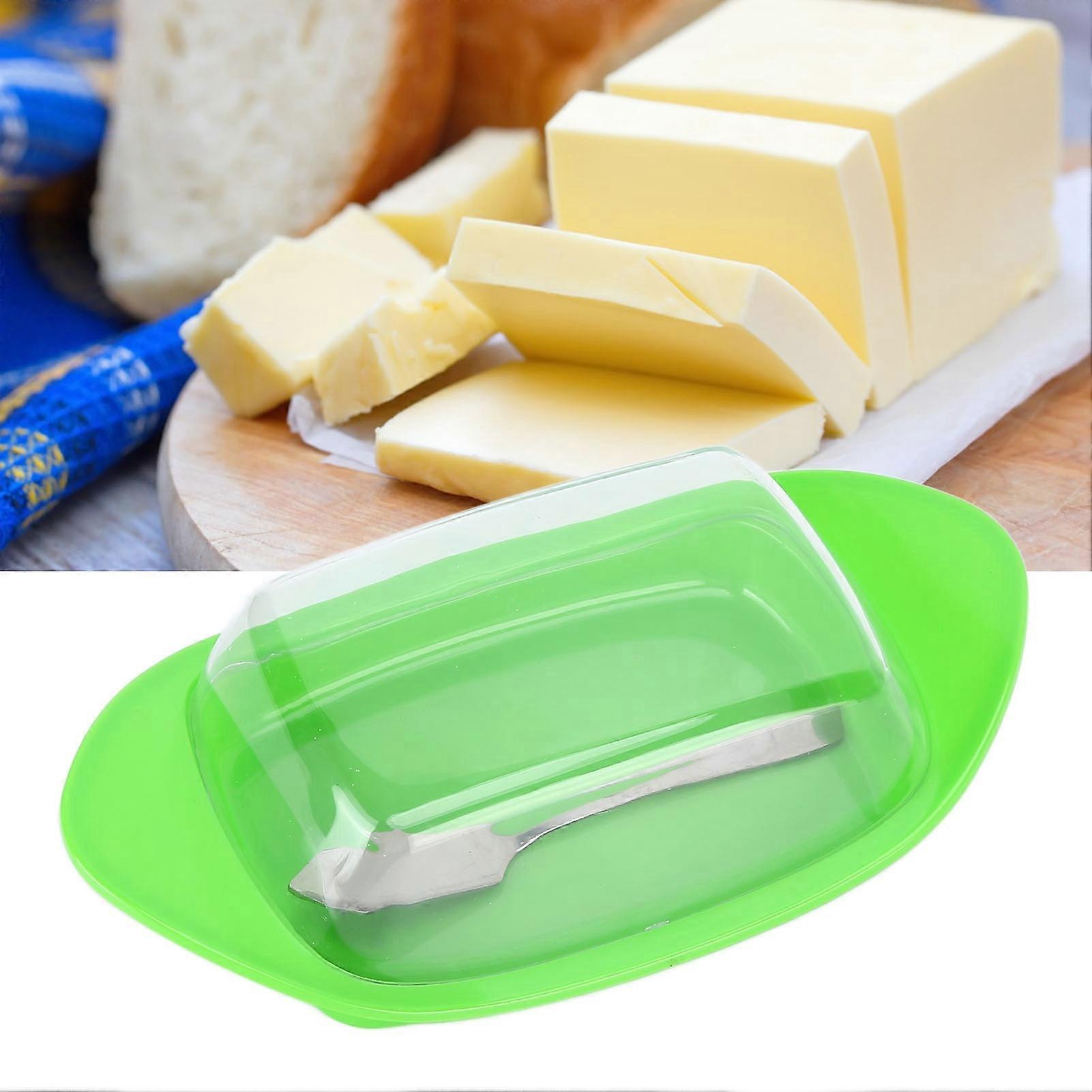 Butter Box 22.5x12.5x7cm with 14cm Knife Green Food Grade PP