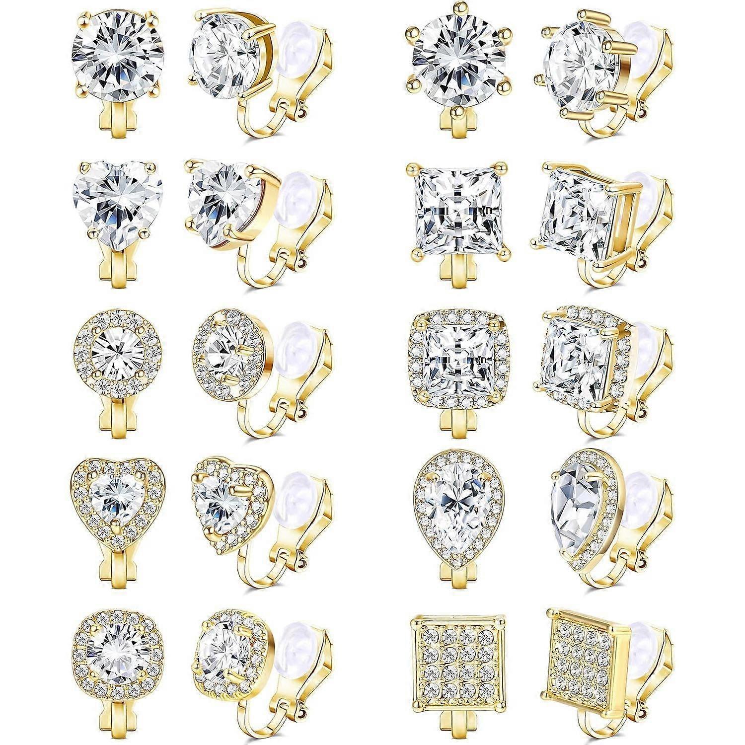 Jstyle 10Pairs Cubic Zirconia Clip On Earrings for women Square Heart Ear Clips Earring Non-Pierced Clip Earrings Daily
