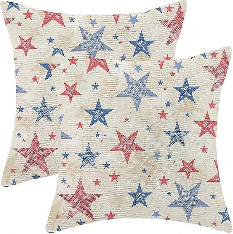 4th of July Pillow Covers 18x18 Set of 2, Red Independence Day Stars Decorative Outdoor Throw Pillows Linen Memorial Day Patriotic Cushion Covers for