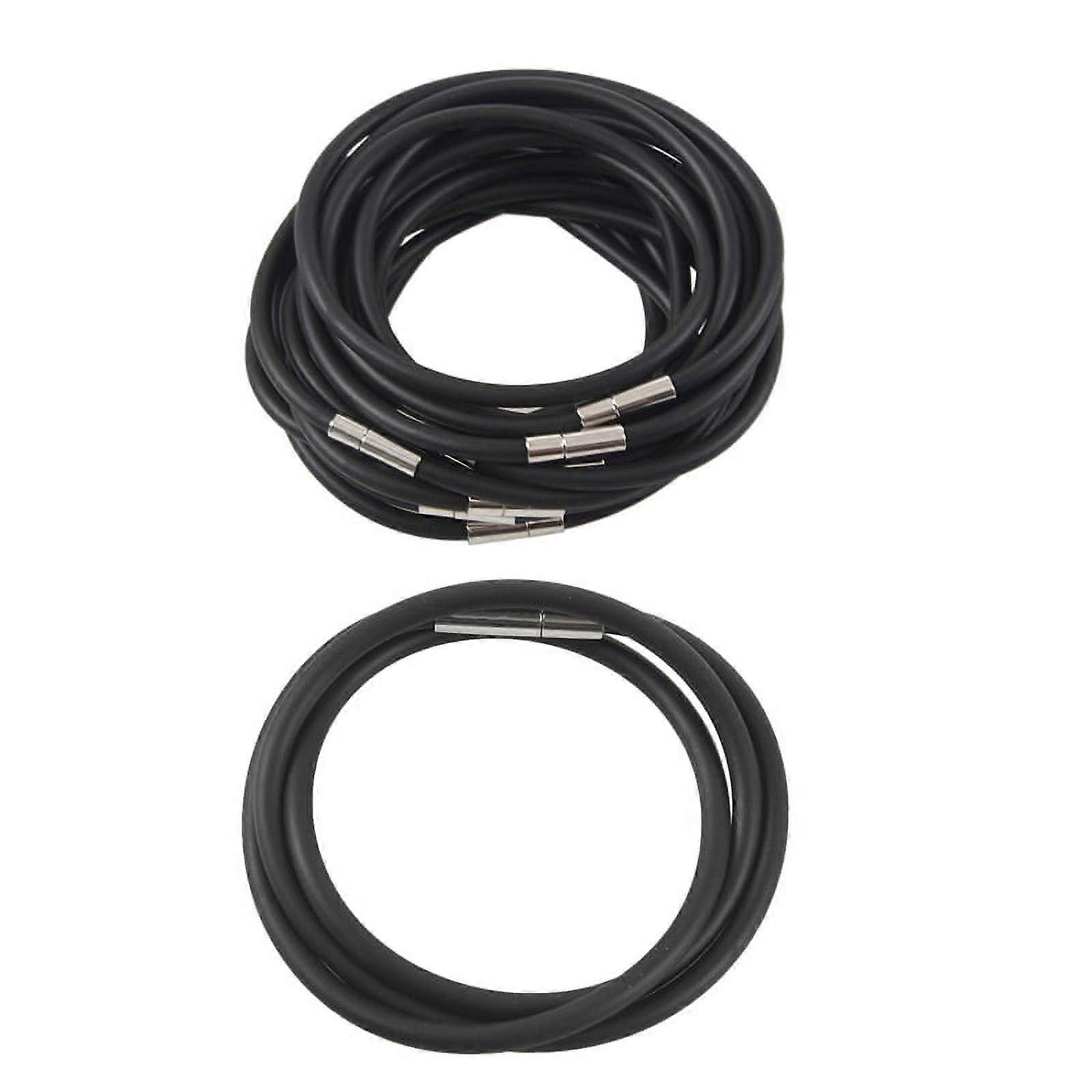 1Pcs 3Mm Cord in Rubber Black Necklace with Clasp in Steel Stainless - 16 Inch & 10Pcs Black Rubber Lace