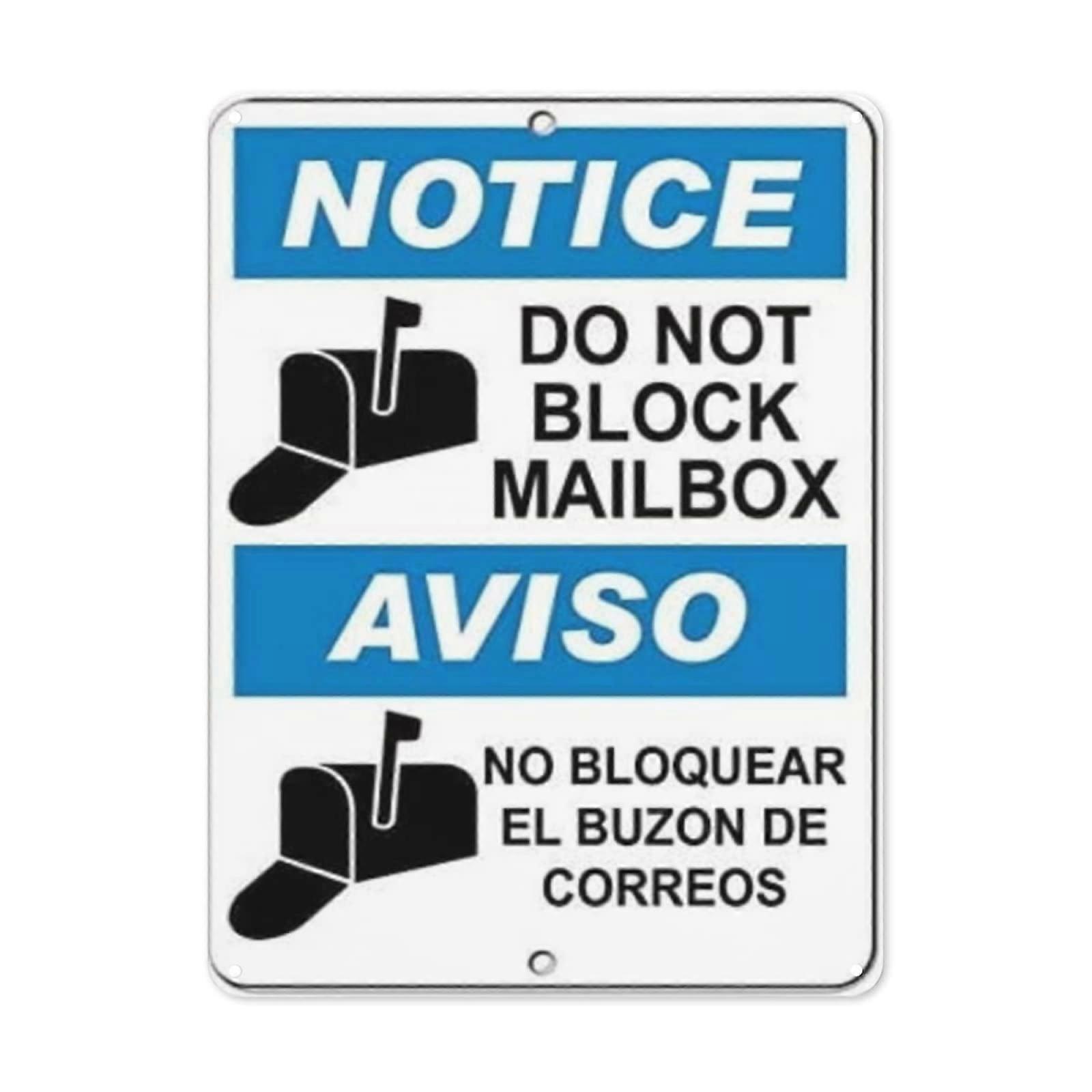 Aluminium Metal Sign Rustic Post Notice Do Not Block Mailbox Parking for SignOutdoor Warning SignNew Wall Decoration Size: 8 x 12 inch
