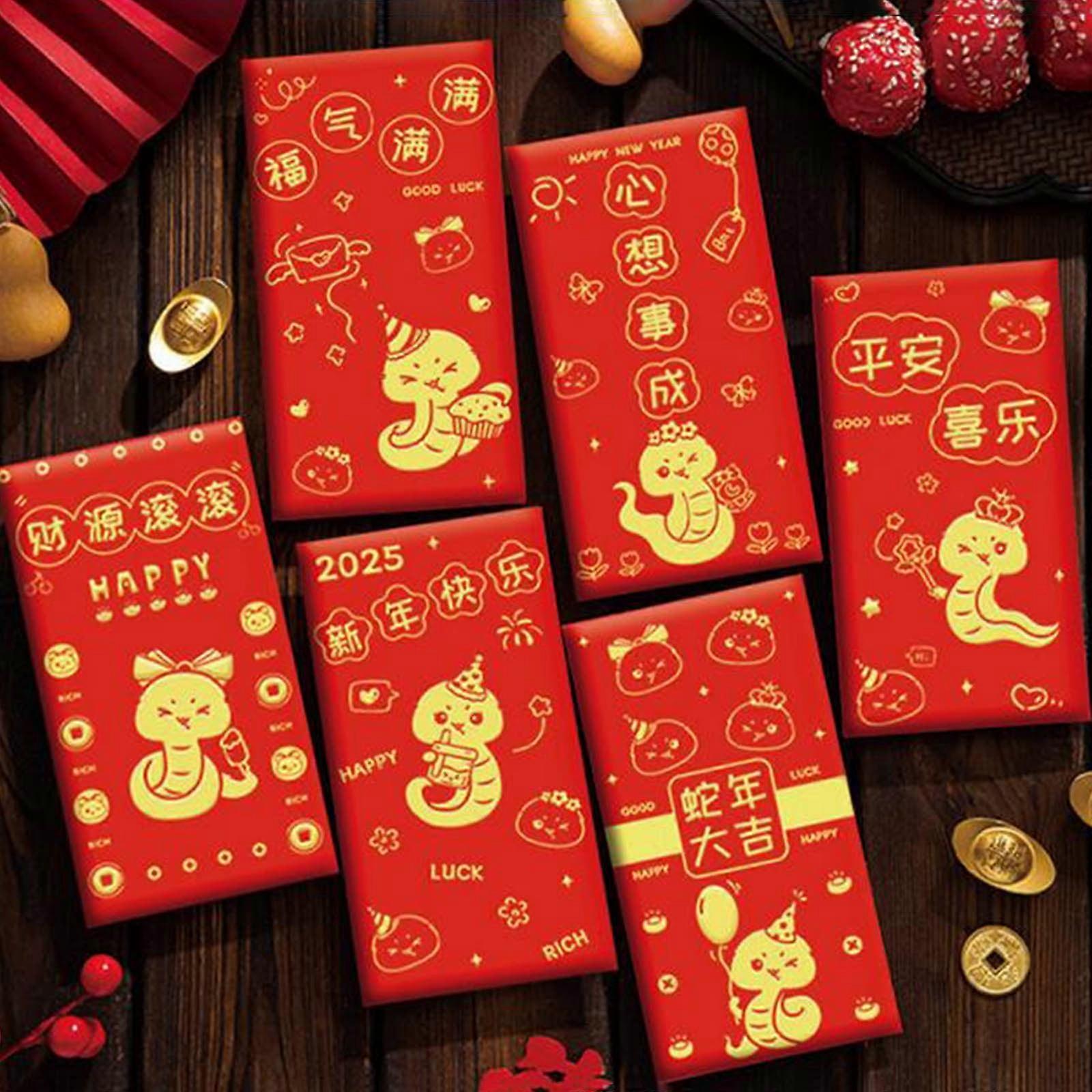 YMARPT Snake Red Envelopes 2025 - 6PCS Chinese New Year Lucky Money Packets for Snake Year Spring Festival, compatible with red envelope gifts