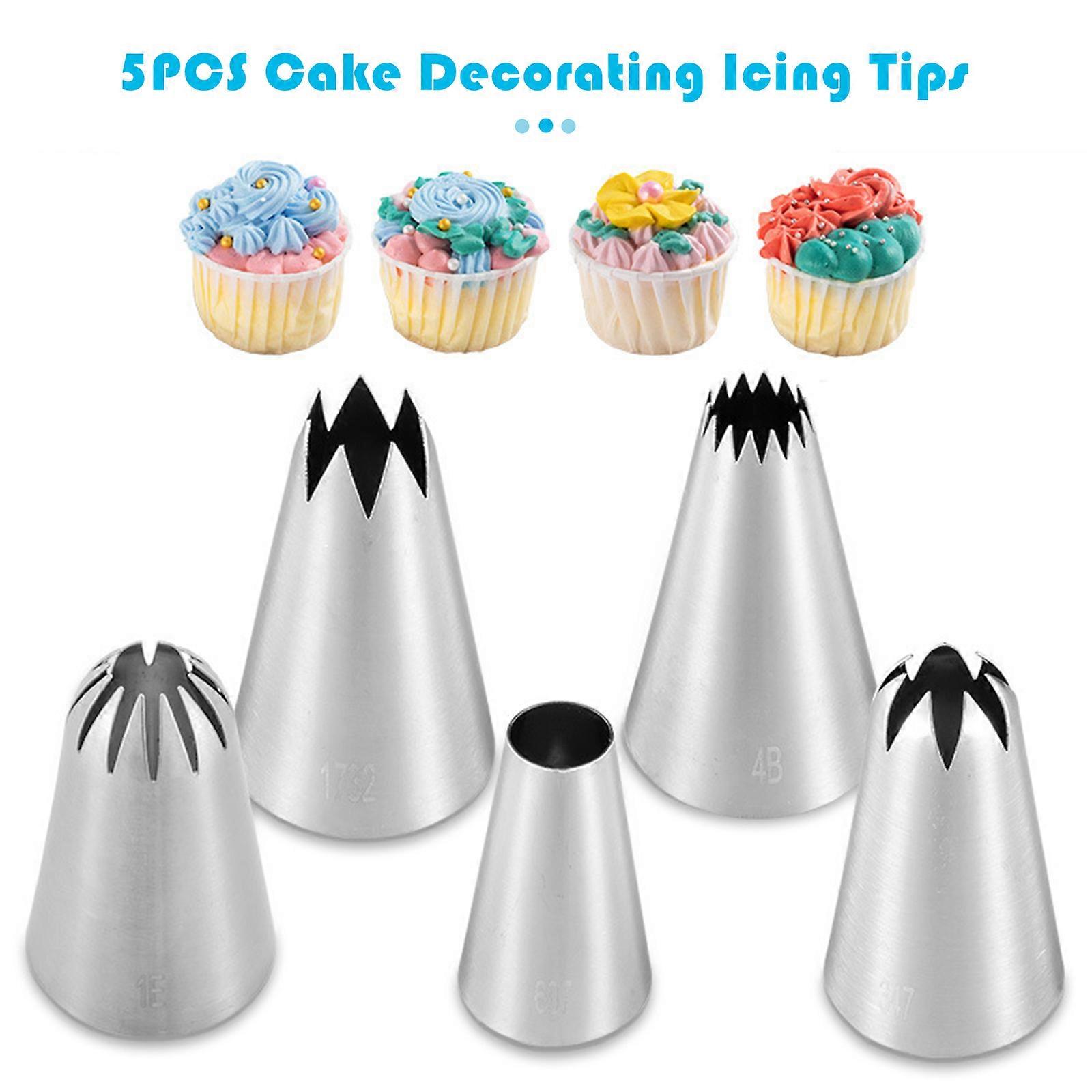 5PCS Cake Decorating Icing Tips for Cake Cupcake Decorating Stainless Steel Icing Piping Nozzles Pastry Tips Frosting Tips for Birthday Cake Party Cookie Dessert Restaurant Description: 5PCS cake decorating icing tips are great kitchen utensils for making cakes, desserts, or other food. Everyone in your family will love this convenient tool, especially for children. They are made of 304 stainless steel, and they are suitable for use for DIY cooking. Features: 1. 5PCS cake decorating icing tips meet the decorating or practicing needs of cake makers. 2. Perfect for decorating desserts, cakes, cupcakes, cookies, pastry dough, cookie dough, sugarcraft, etc. 3. Strong & durable 304 stainless steel is corrosion-resistant, reusable, and non-stick. 4. Each of the cupcake icing tips creates a different design for all types of great creations. 5. The cake decorating icing tips set is a beautiful gift for all occasions Whether it is a birthday, wedding, mother's day, Christmas, housewarming, or anniversaries. Specifications: Color: Silver Material: 304 Stainless Steel Style: Practical Application: Cake Occasion: Home, Restaurant Package Size: 5*3*3cm / 1.96*1.18*1.18inch Package Weight: 48g / 0.1lb Package List: 1 * 5PCS Icing Tips
