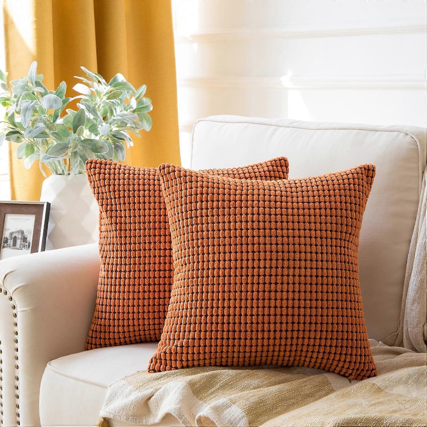 Transitional Striped Polyester Blend Throw Pillow Covers, 20" x 20", Orange Red, Set of 2