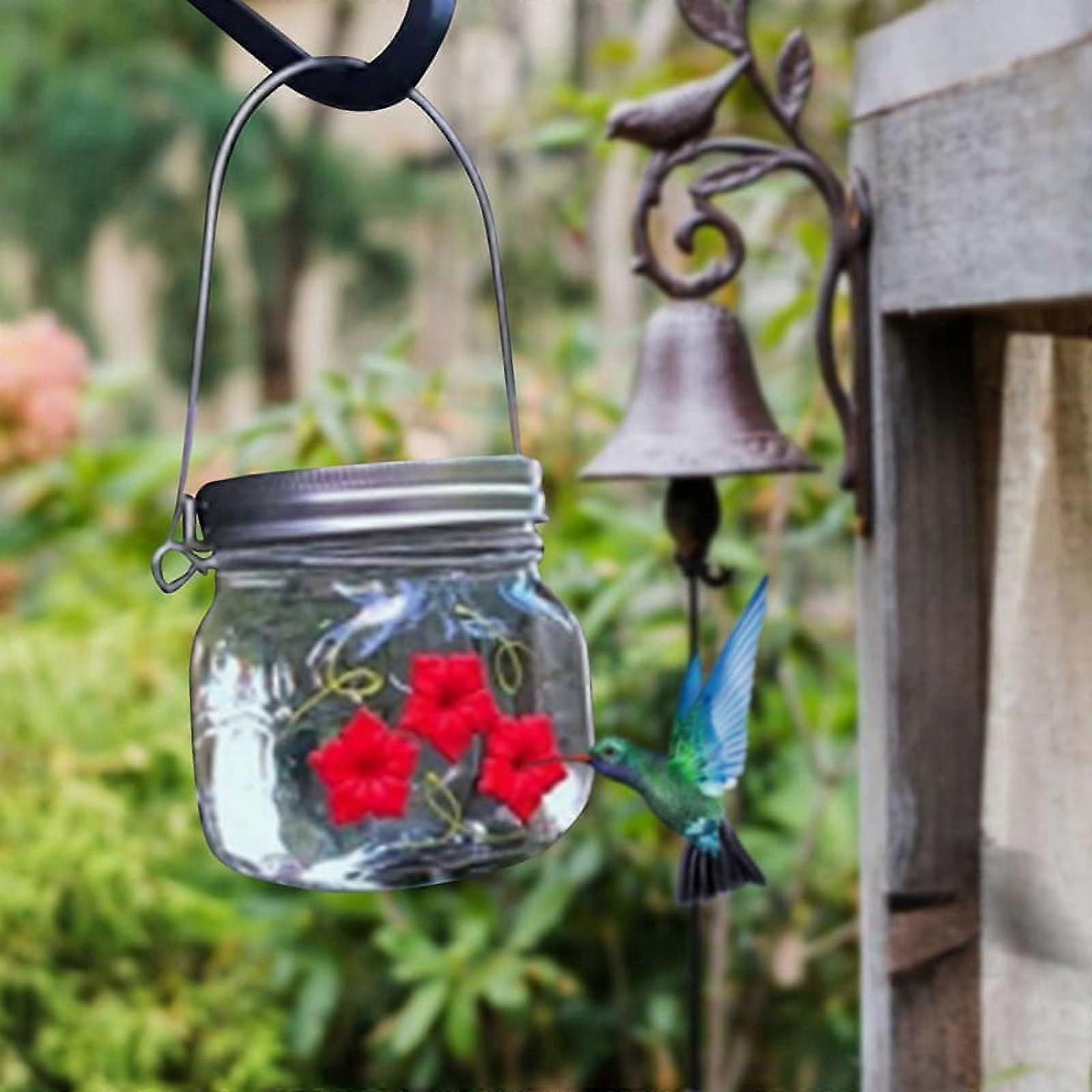 1Pack Mason Jar Bird Feeder with Flower Feeding Ports for Outdoor Hanging Garden Decoration,Jar Type
