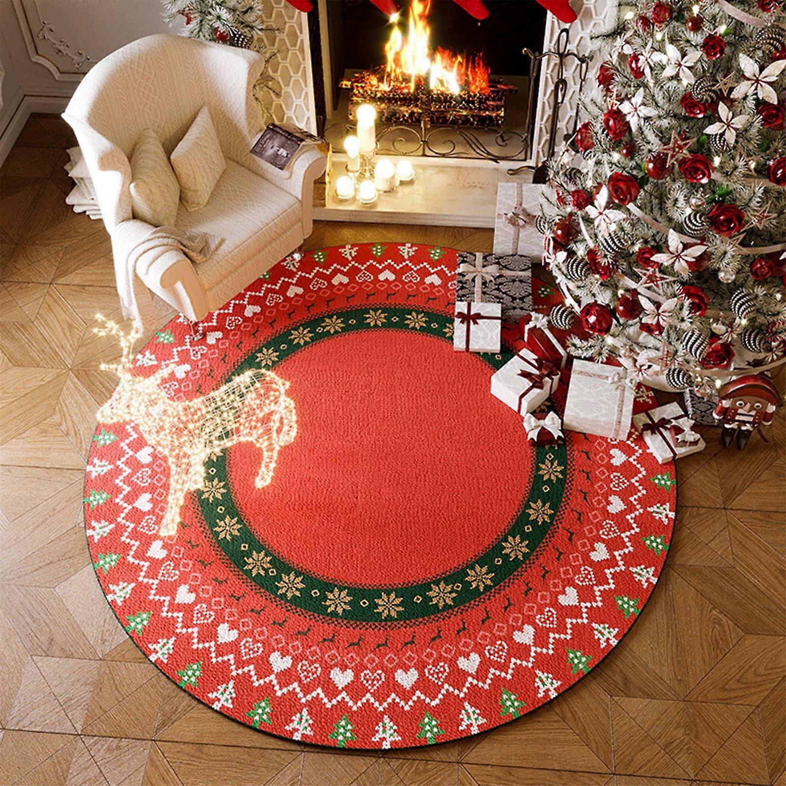Christmas Round Area Rug 23.6in, Non-Slip Xmas Doormat, Washable Floor Mat for Living Room Bedroom Study, Compatible with Christmas Decorations