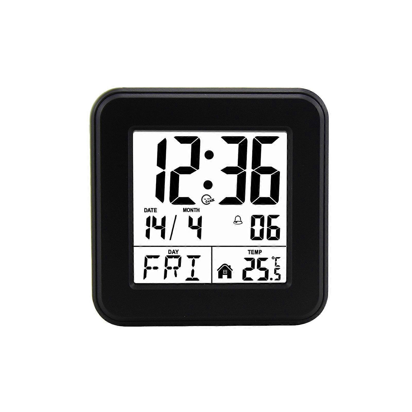 AQITTI Home Clock Compatible with Battery Powered LCD Digital Alarm Clock with Date, Day, Snooze, Temperature, 12/24H, Backlight, Silent, Travel Size