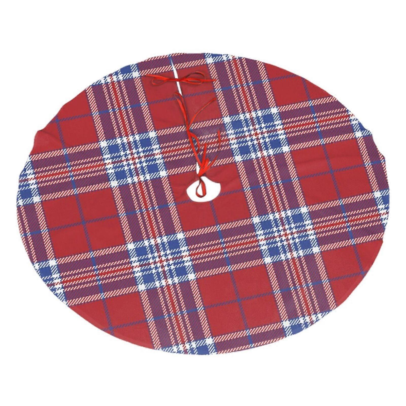 Usa America Red White & Blue Tartan Plaid Christmas Tree Skirt, Soft And Funny Merry Christmas Tree Collar Farmhouse Xmas Holiday Decoration 48"