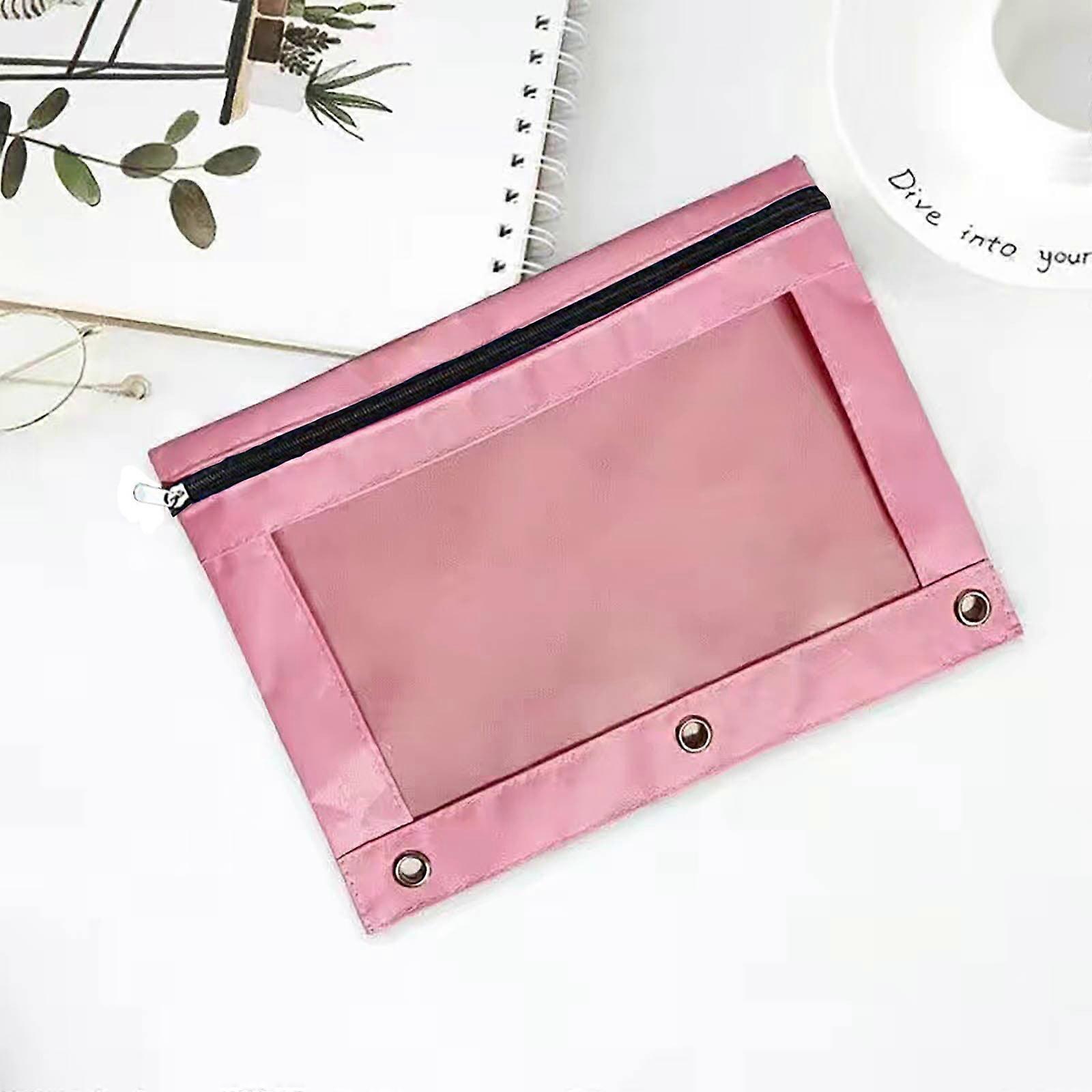 ESULOMP 3 Hole Pencil Case, Pencil Pouch with Zipper Pulls, Pencil Case for Kids with 3 Ring Binder 9.8" x 7.1",(Pink)