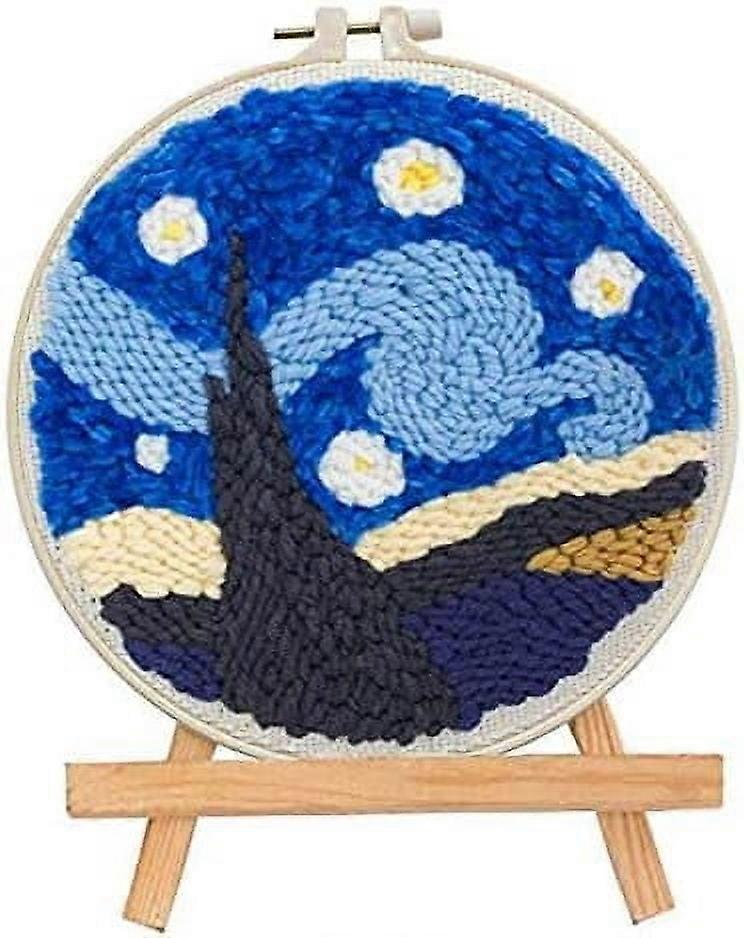 Punch Needle Starter Kits Punch Needle Tool DIY Rug Punch Beginners Kit with an Adjustable Punch Needle Embroidery Frame 7.8x7.8 Inch (Starry Sky-2)