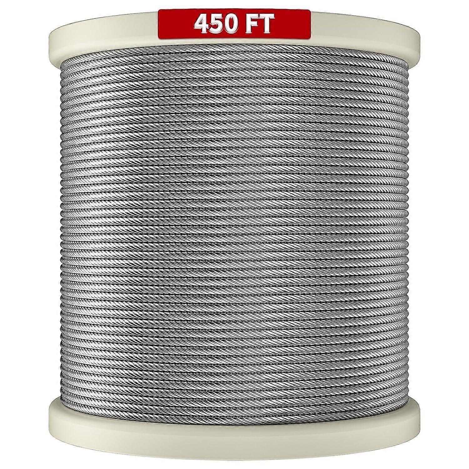 450ft 1/8" T316 Stainless Steel Cable, 7x7 Strand Wire Rope for Deck Railings, Balusters, Stairs, Handrails, Porch, Fence