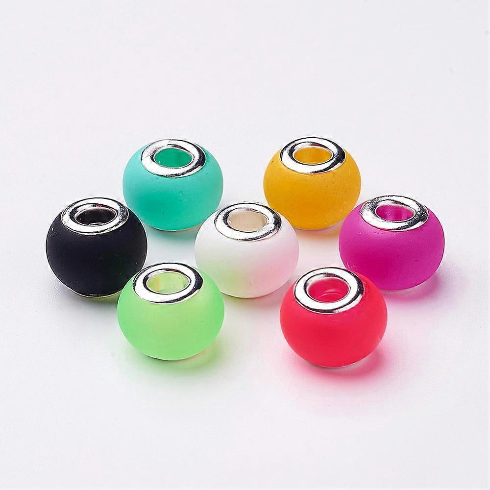 100pc Glass European Beads with Silver Color Plated Brass Double Cores Large Hole Beads Rubberized Style Rondelle Mixed Color 15x11mm Hole: 5mm