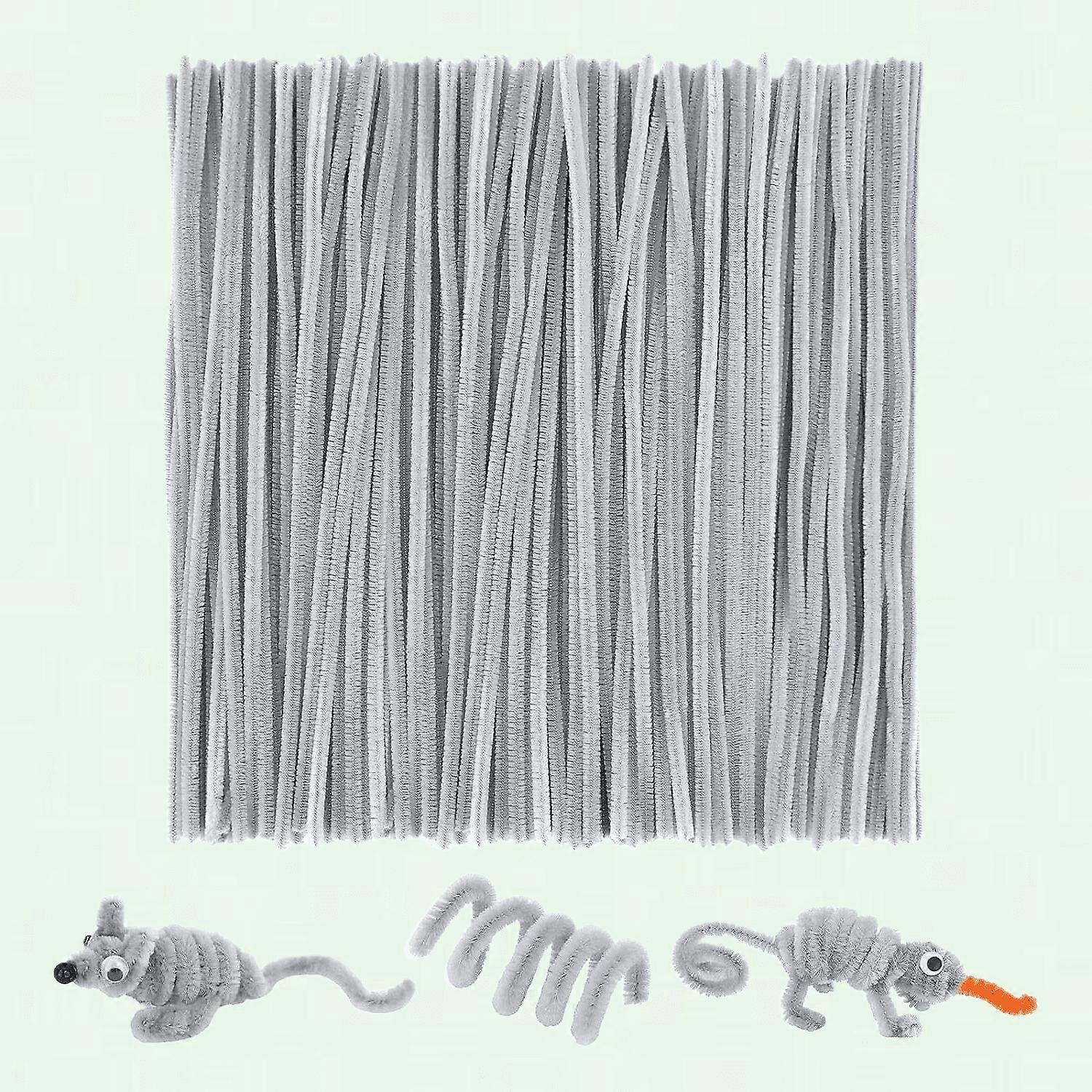 Bendable Grey Pipe Cleaners, 200 PCS Chenille Stem for Arts and Crafts, 6mm x 30cm, Assorted Colors