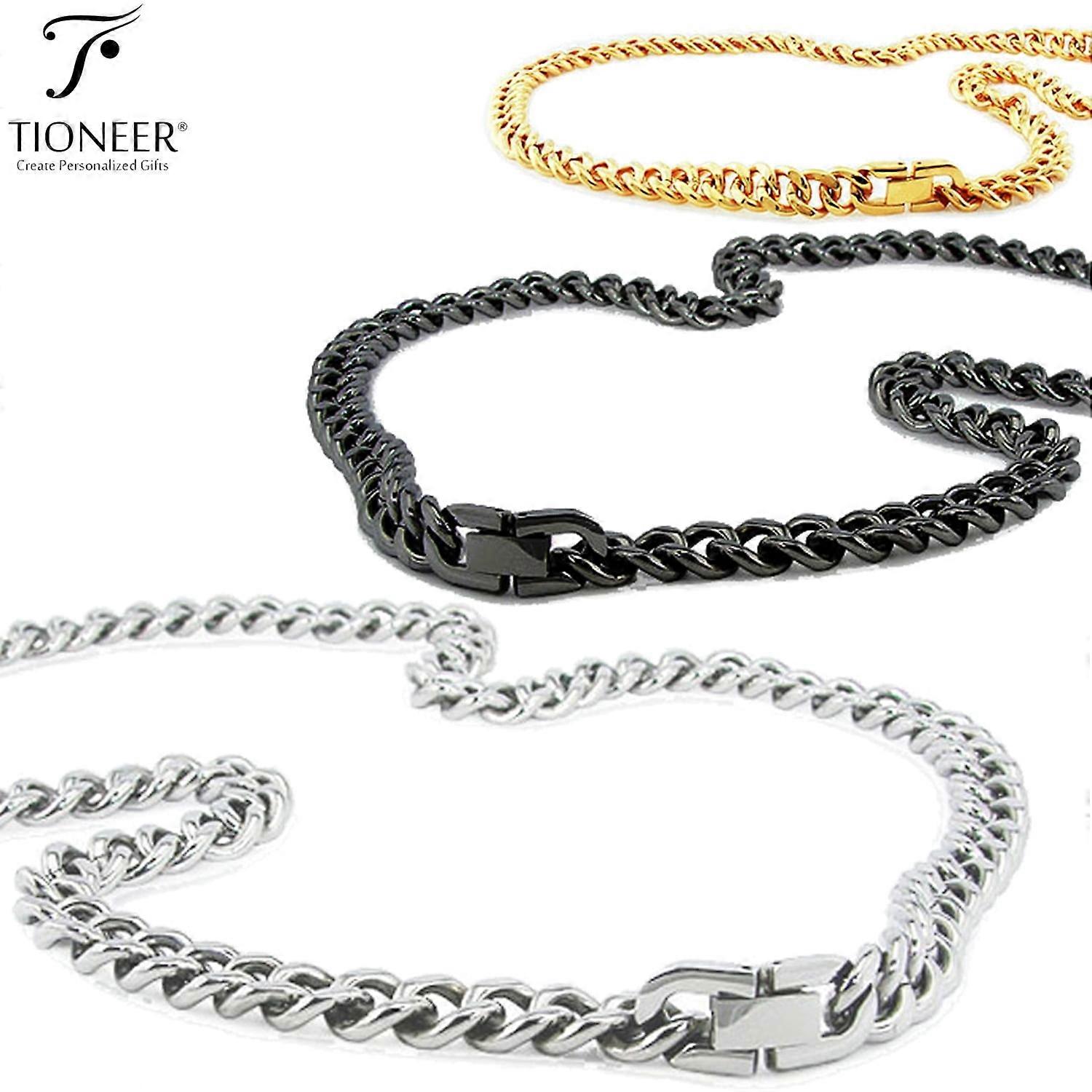 Tioneer 10mm Curb Chain 316L Stainless Steel Minimalist Fashion Accessory Necklace in Silver Black Gold 18" 20" 22" 24"