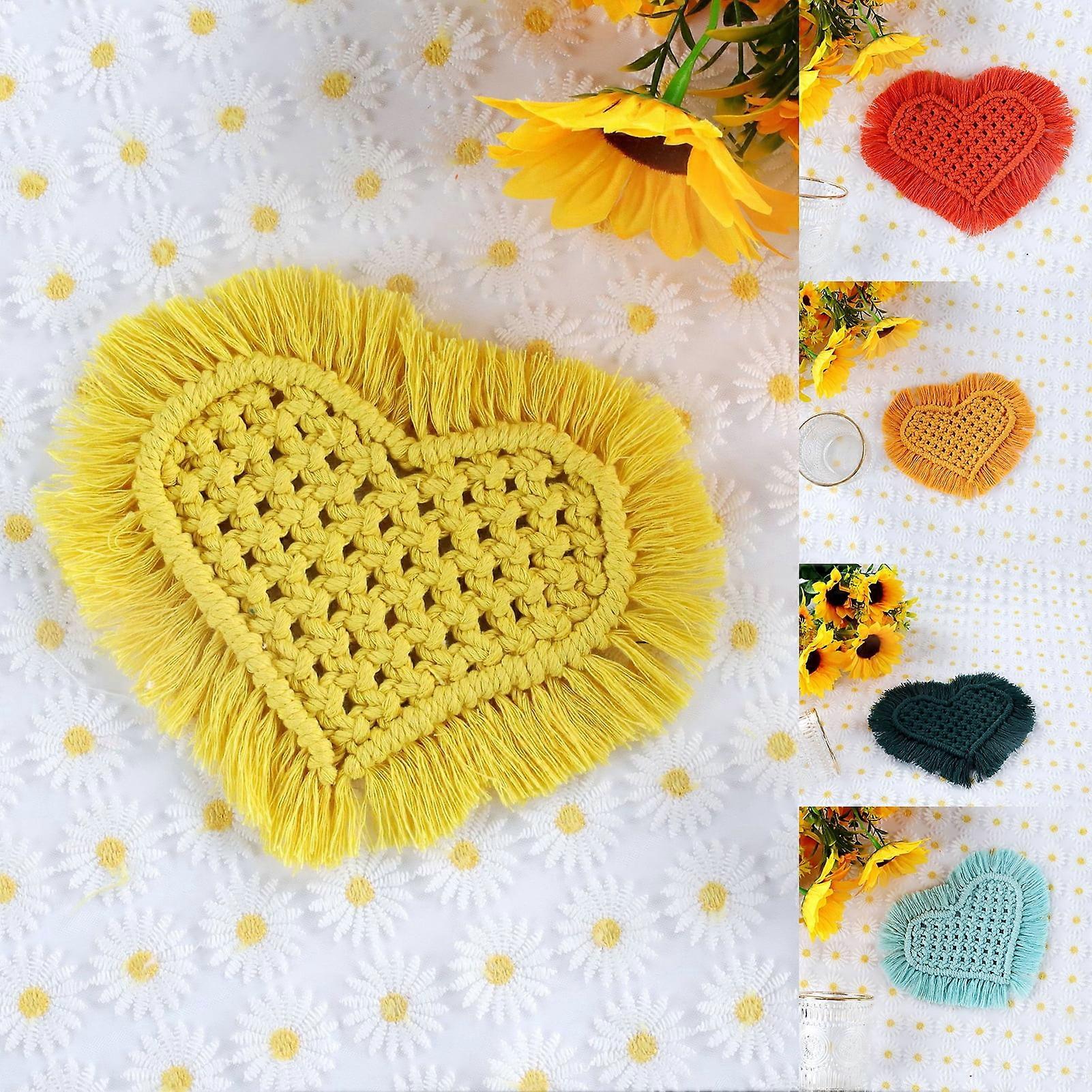 Love Heart Cup Mat, Absorbent Cotton Woven Coaster with Tassels, Compatible with Coffee, Heat Protection for Home Bar Dining Decor