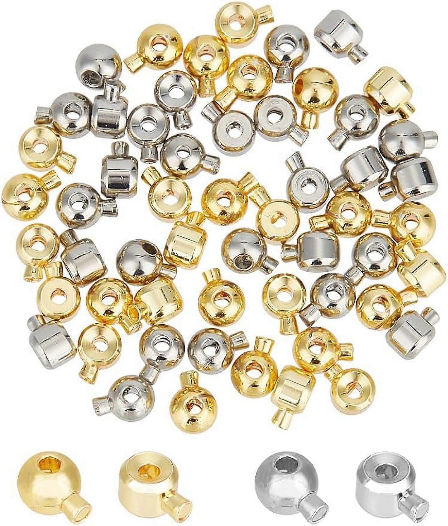 56Pcs Brass Crimp Beads 2 Colors Column Beads Cord End Caps Rondelle Metal Crimp Beads Tube Crimp End Beads