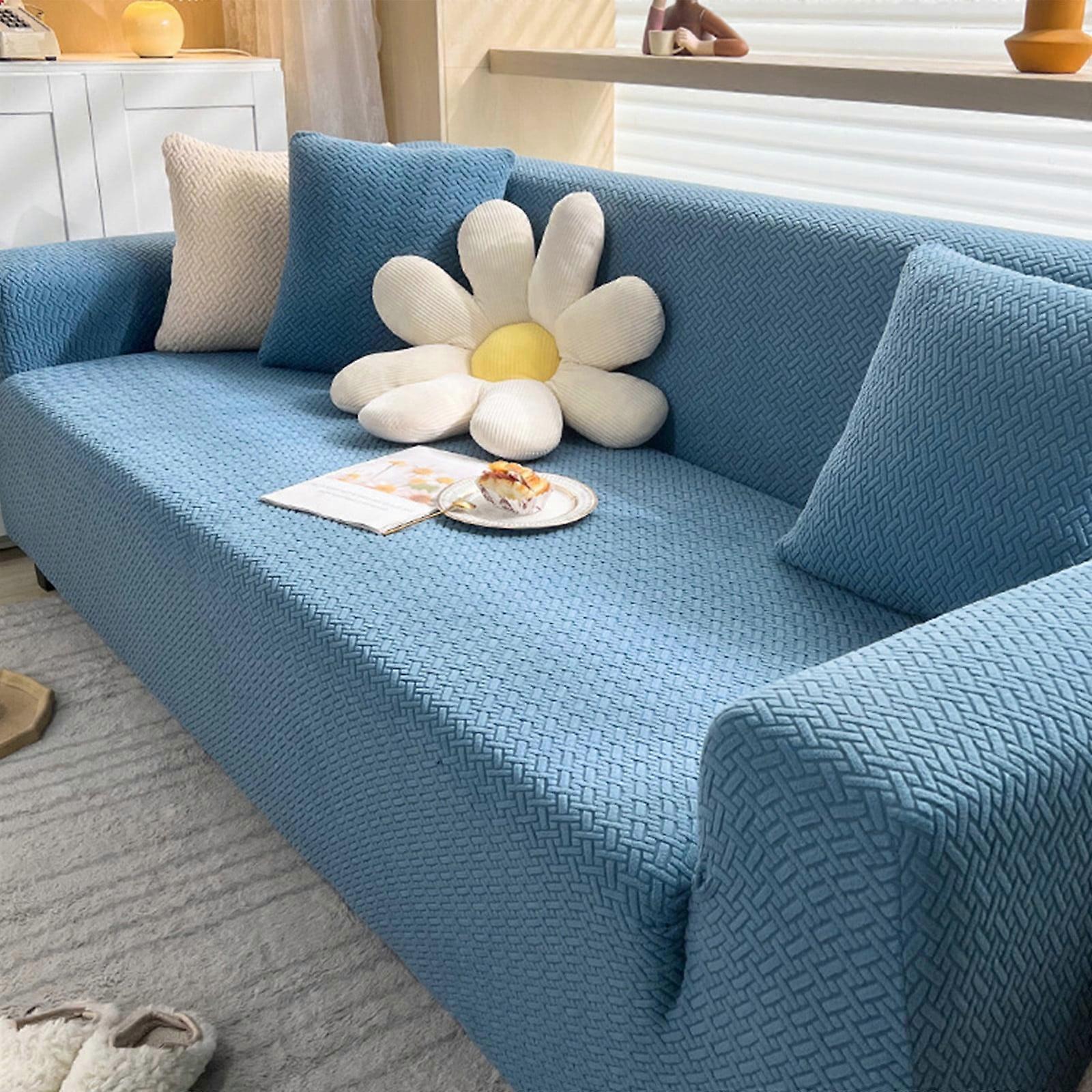 Pretxorve Stretch Sofa Cover Compatible with XL Sofas, Knitted Fabric Blue, Pet Dog Friendly, Non-slip, High Elastic Furniture Cover