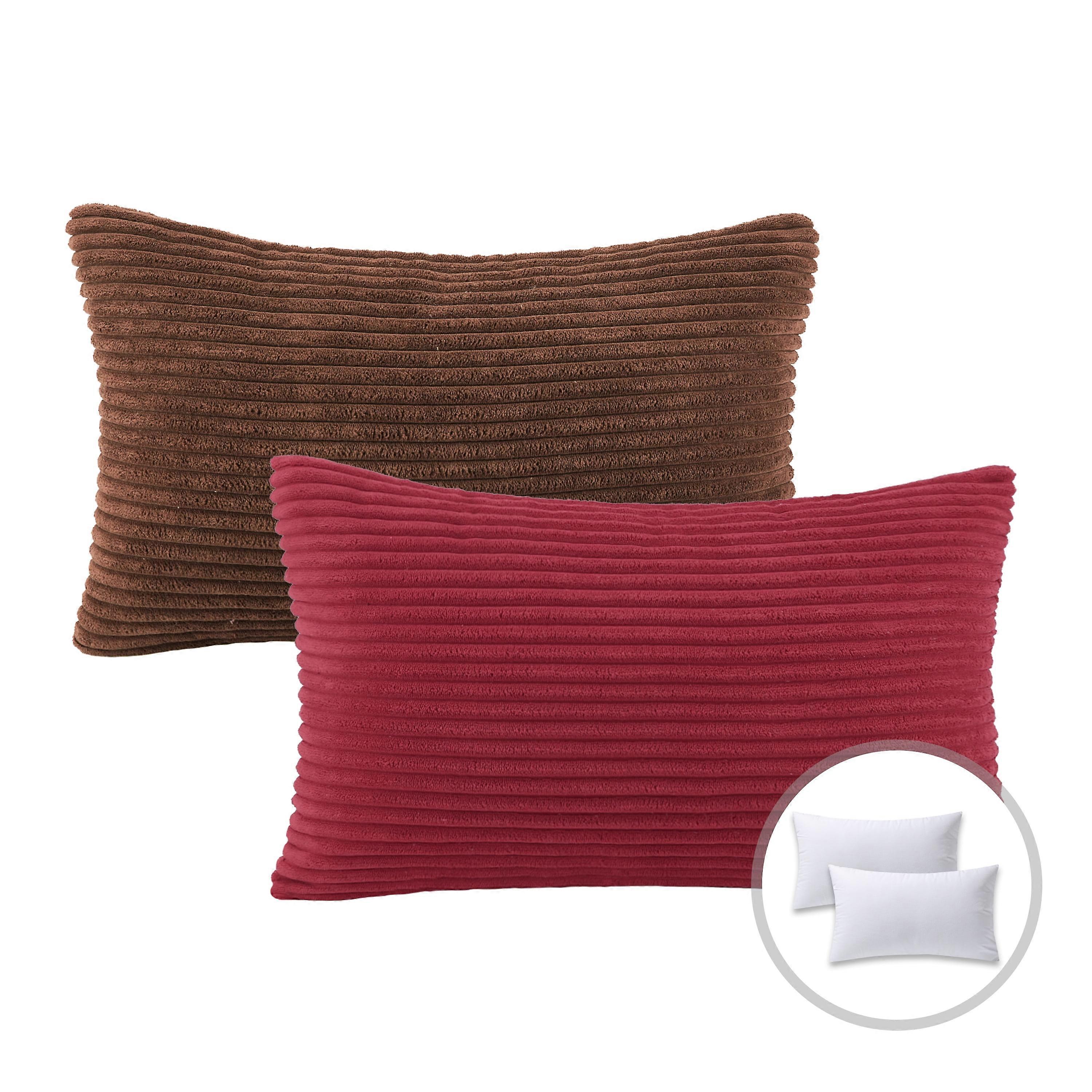 Phantoscope Christmas Decorative Throw Pillow Bundle, Corduroy Striped Velvet 12"x20", Dark Coffee & Red, 2 Pack with Inserts