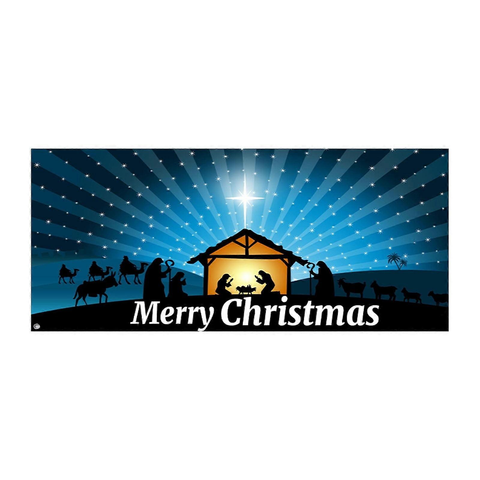 JINGDAN 70x157.4in Merry Christmas Banner Outdoor Indoor Garage Door Cover Mural Snowman Santa Winter Holiday Decoration