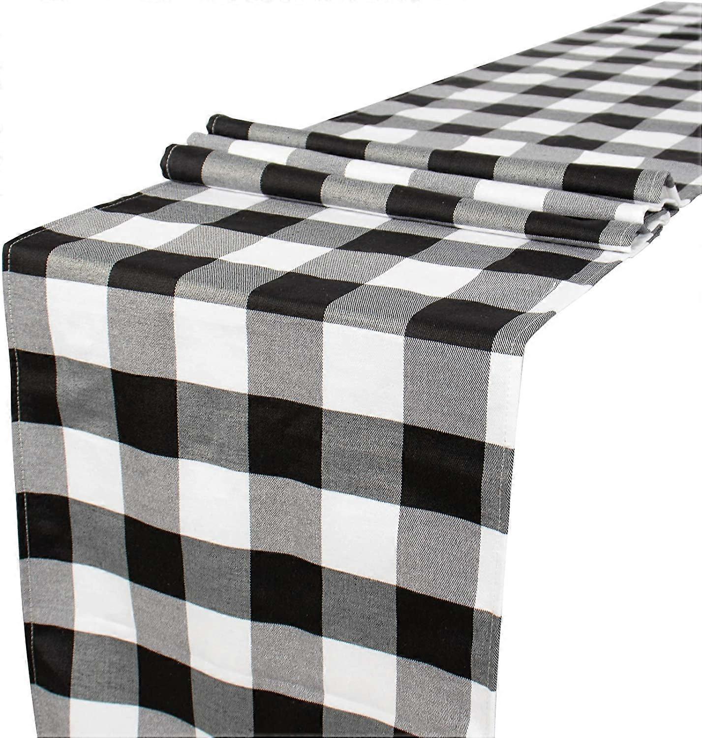 Dalrosia Buffalo Check Table Runner, Cotton Plaid, White & Black, Compatible with Holiday & Party Decor
