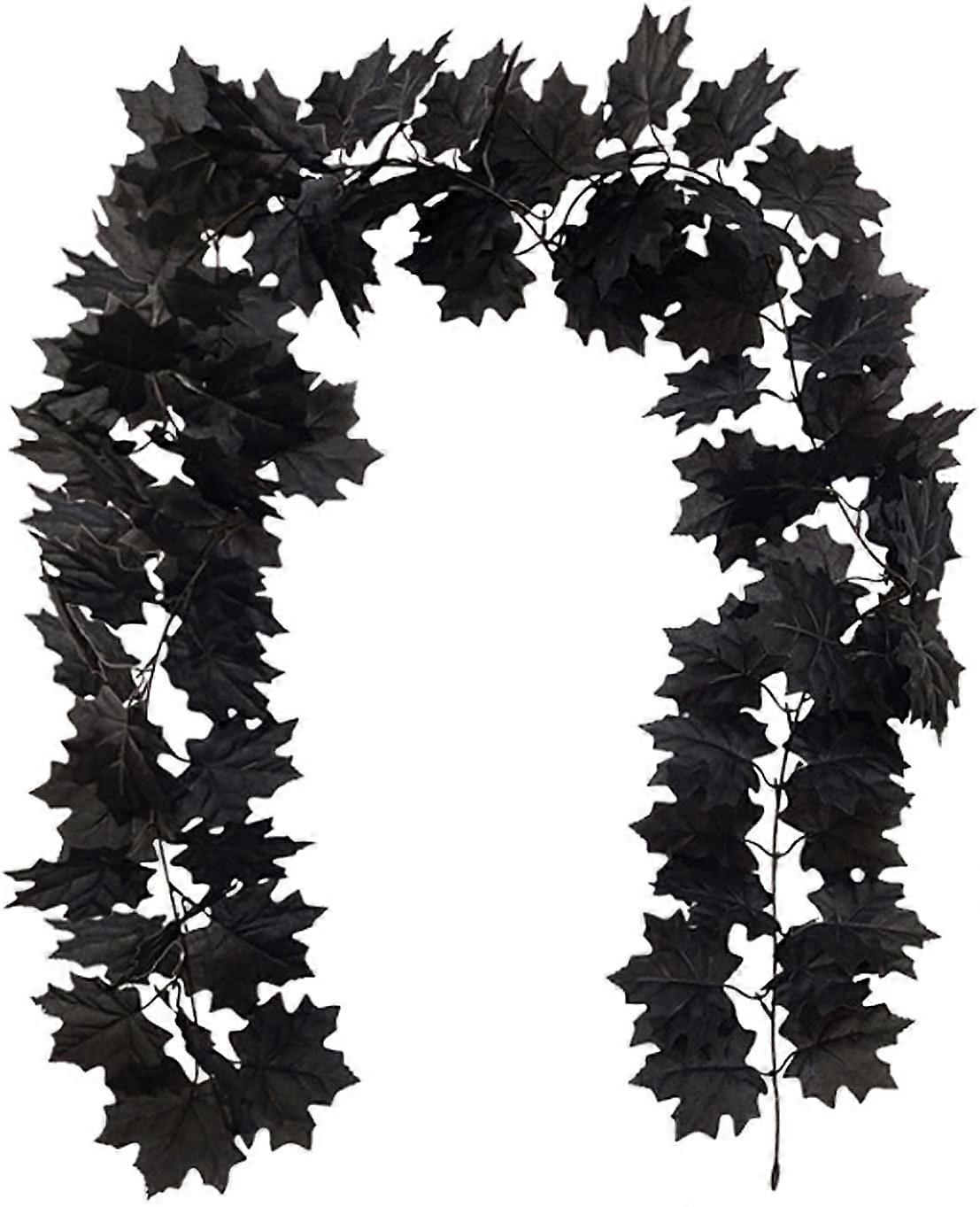 6ft Artificial Black Maple Leaf Garland, Fall Hanging Vine for Halloween Thanksgiving Home Mantle Fireplace Decoration
