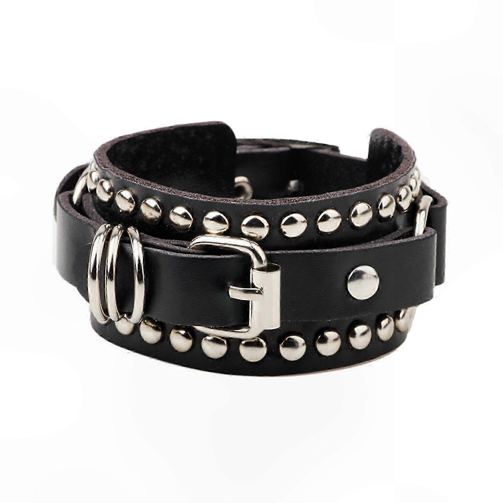 Studded Leather Wristband with Metal Spikes Punk Style Unisex Cuff Bangle Riveted Armband for Men and Women
