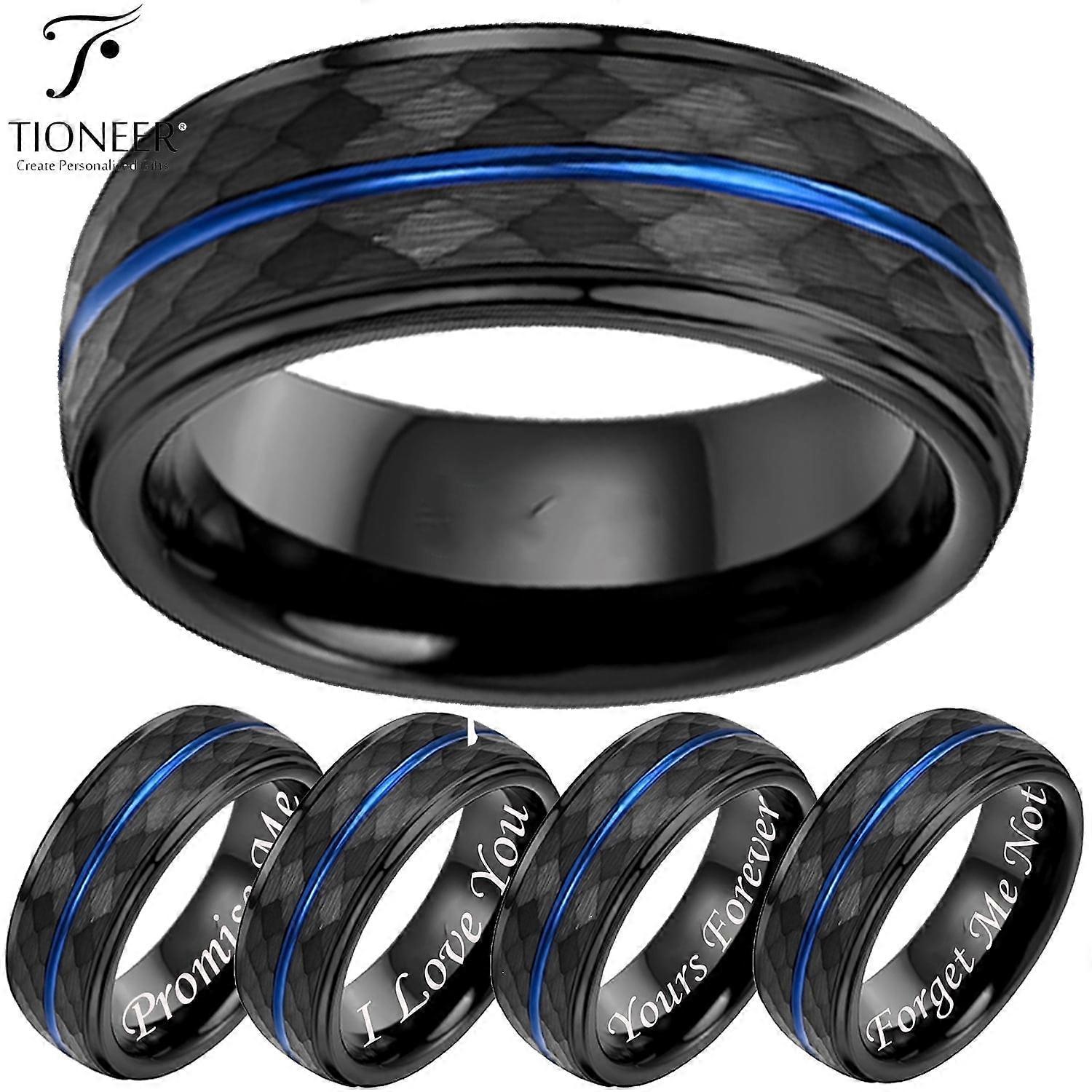 Tioneer Tungsten Carbide Diamond Black Blue Groove Center Wedding Band Ring Men Women Engraving 8mm