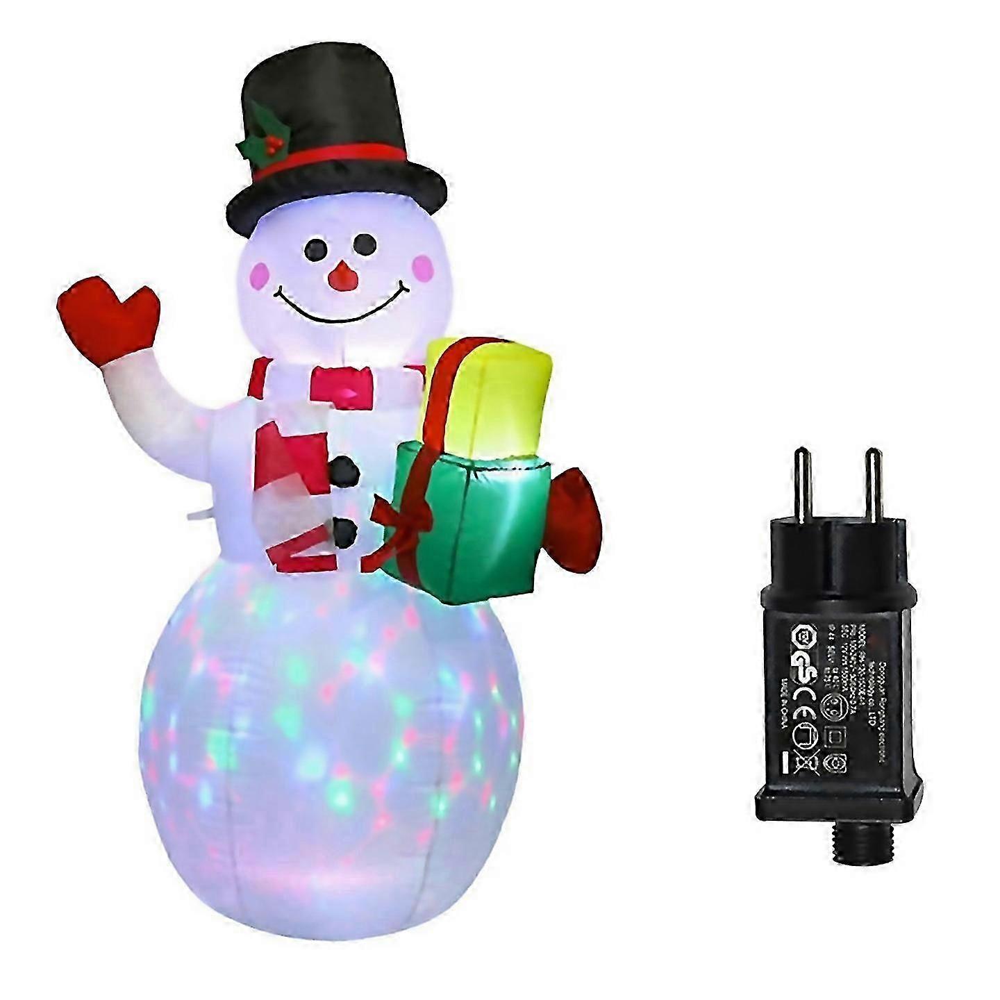Fangrui Product Details A Cute Inflatable Snowman Christmas Decoration Holding A Gift And Saying Hello Will Make Your Kids And Guests Scream With Delight Upgraded Rotating Led Light Durable Quality: Made Of High-quality Polyester, Weatherproof And Fade-resistant Equipped With A Powerful Waterproof Built-in Fan, Just Plug It Into An Outlet And In Seconds Youll Have A Cute Glowing Snowman Inflatable No Need To Worry About This Snowman Christmas Decoration Flying Away Inflatable Christmas Outdoor Yard Garden Decoration. Plug Type:eu Plug,it Applies To Indonesia, Germany, France, Spain, Italy And So On. Voltage:ac100-240v Colour:as Shown Material:polyester Package Contents: 1 * Christmas Inflatable Snowman+led Light+pull Rope+fan Only The Above Package Content, Other Products Are Not Included. Note: Light Reflection And Different Displays May Cause The Color Of The Item In The Picture A Little Different From The Real Thing. The Measurement Allowed Error Is +/- 1-3cm.