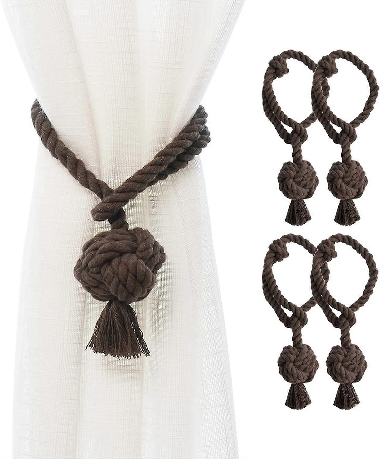 NANAHuang 4 Pack Rustic Curtain Tiebacks - Hand Knitted Cotton Rope Holdbacks for Sheer & Blackout Curtains (Beige)