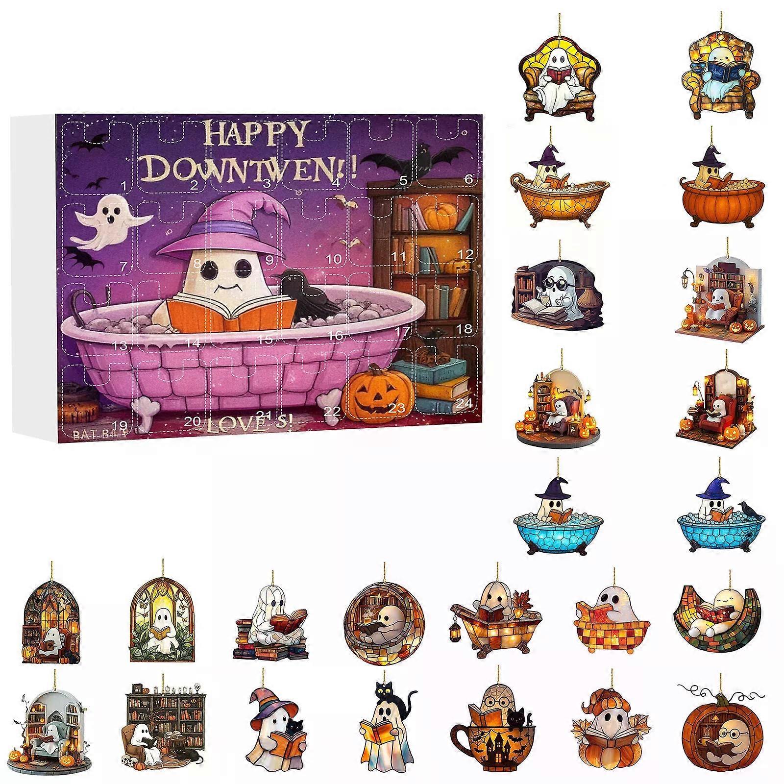 Halloween Countdown Calendar Gift for Kids Ghost Ornament Pendant Advent Calendar Horror Spooky Halloween Calendar for Kids