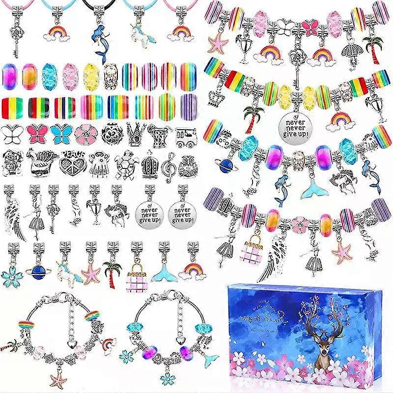 112pcs Charm Bracelet Making Kit Box Birthday Party Favors Unicorn Mermaid Jewelry Bracelet DIY Kit Christmas Perfect Girls Gift